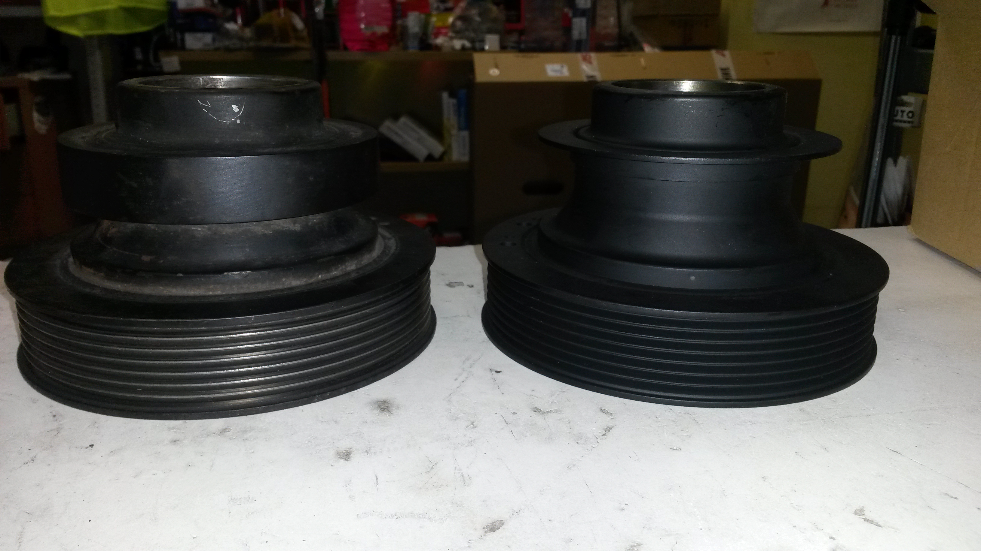 мотор собран и запущен, шкив пока нормально - визуальных биений нет, подтвердили что замена производителем!!!, разница в весе на 100 гр. (новый легче), мотористы убедили что Японцы перестраховались с двойным демпфером.