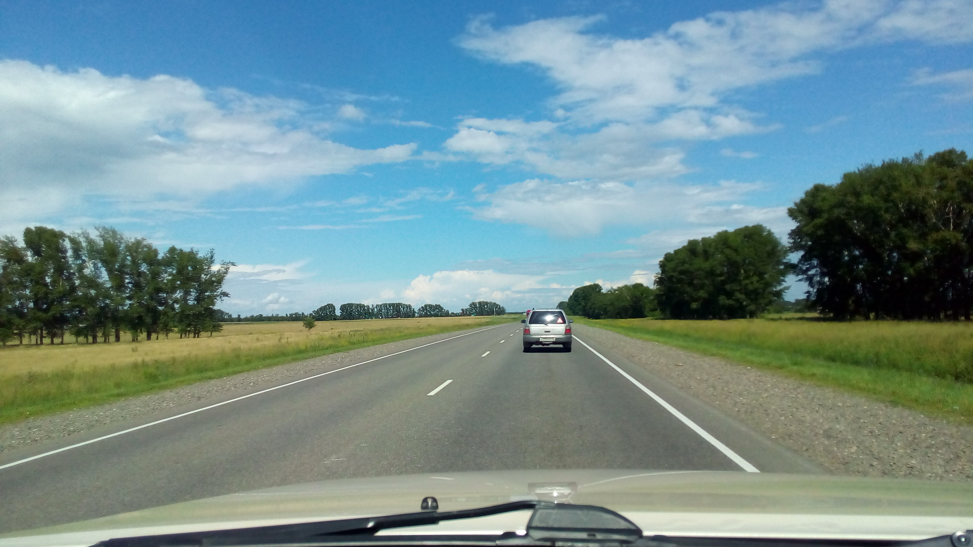 догоняем ливень....тут солнце, лужи, асфальт парит....пахнет сосновым бором и скошенной на обочинах травой...
