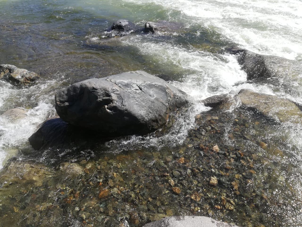 Путёвый водитль по Алтаю говорит что пройдя по мосту и свернув на лево через 200 метров откроются взору наскальные рисунки древнего человека...видать взор у нас не открылся)))