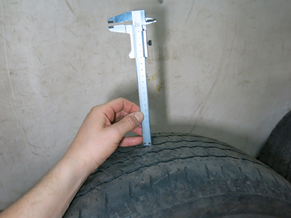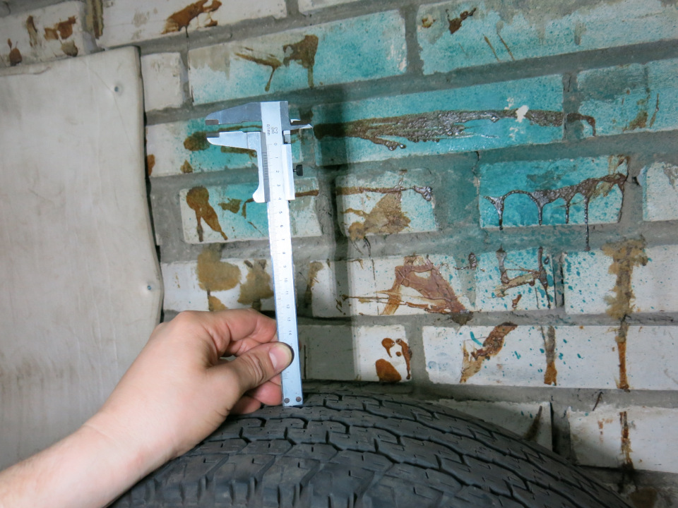 Остаток протектора на 3 баллонах около 5мм, на одном - около 6мм (стояла на запаске, поэтому износ чуть меньше).