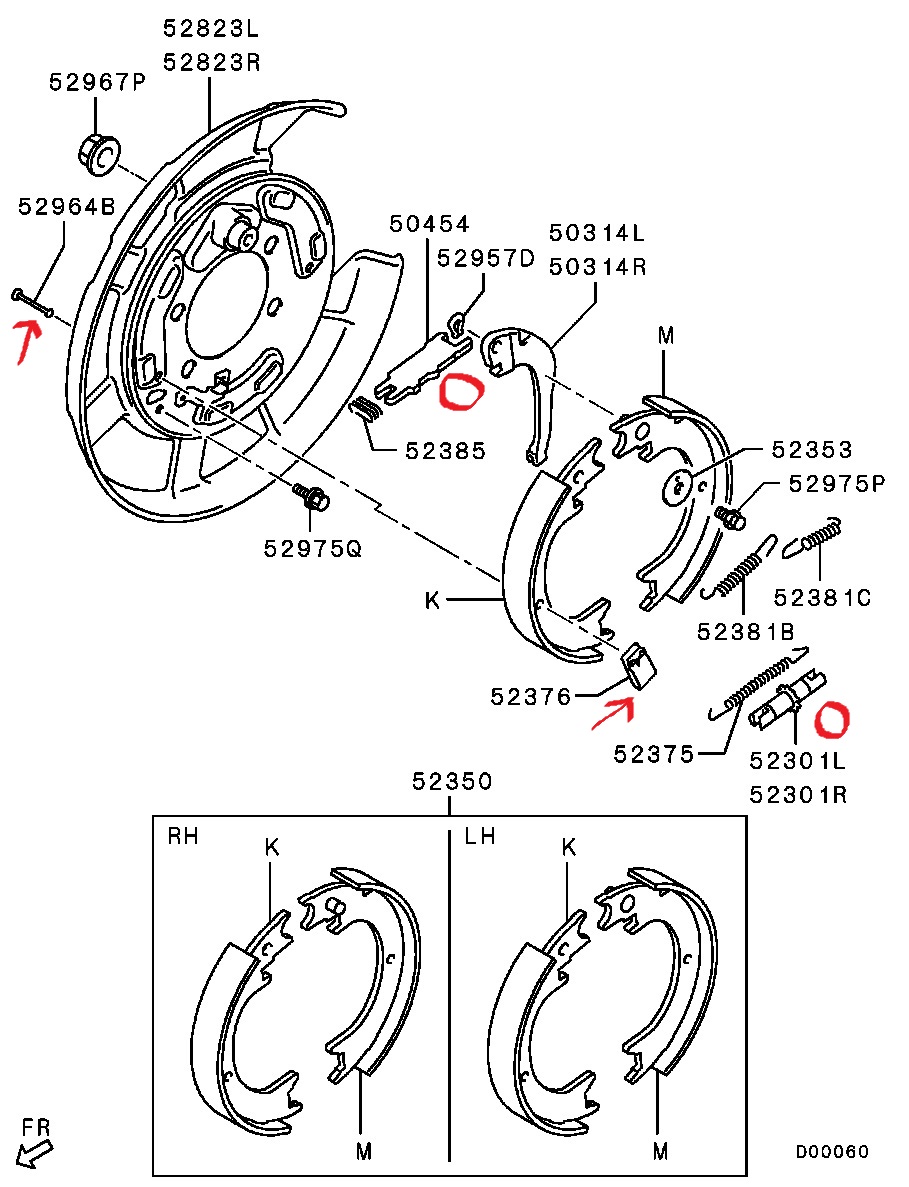 Добавил схему, то что отмечено стрелками - это я явно вижу в барабане или уже выловил, то что кружком, то я не уверен какая именно деталь там валяется, плюс еще выловил одну или две заклепки, откуда они пока понять не могу - возможно с самого тормоза.