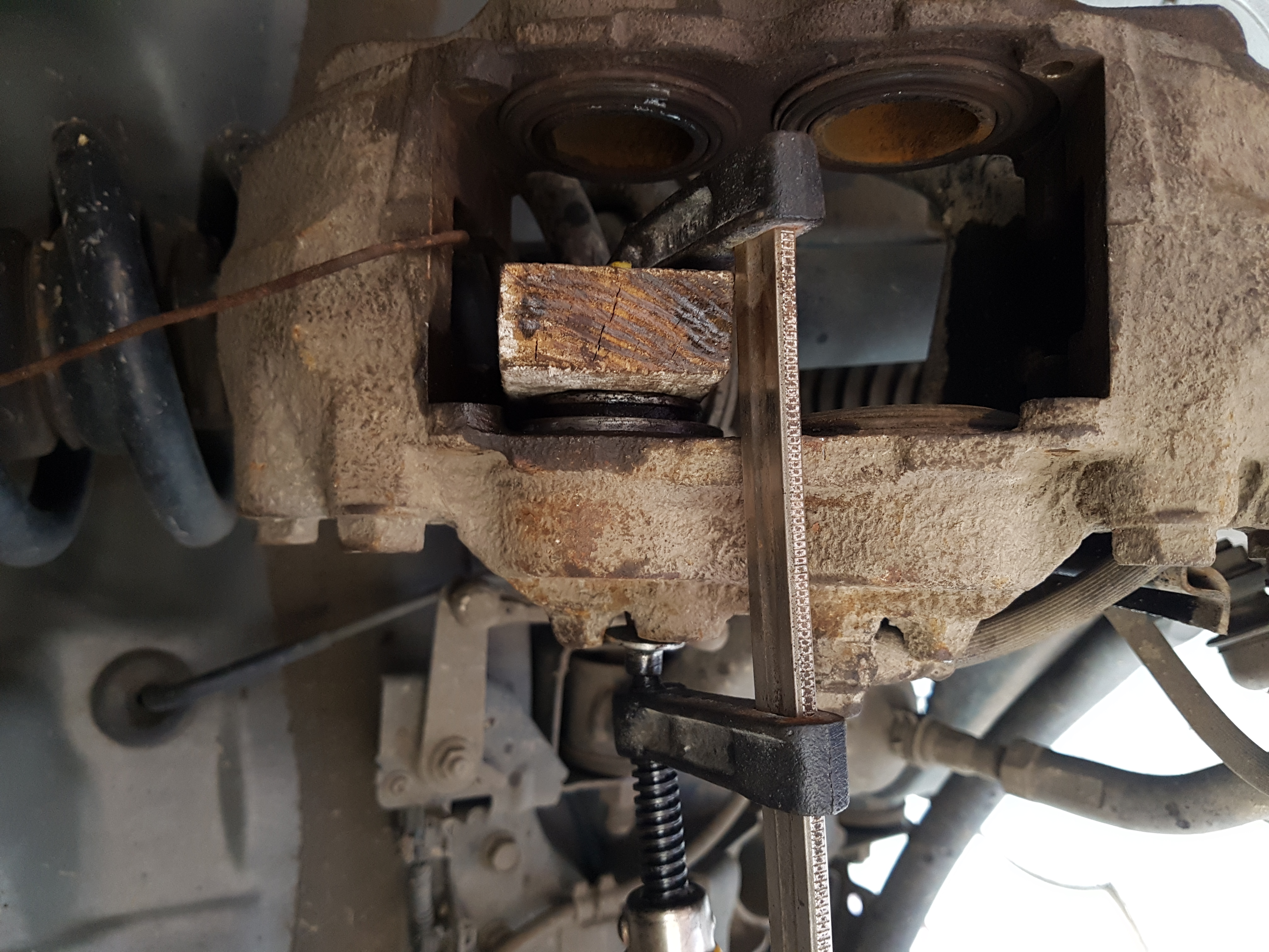 Теперь вторая беда, слева спереди - закис один из поршней... Уже третий час его отмачиваю.