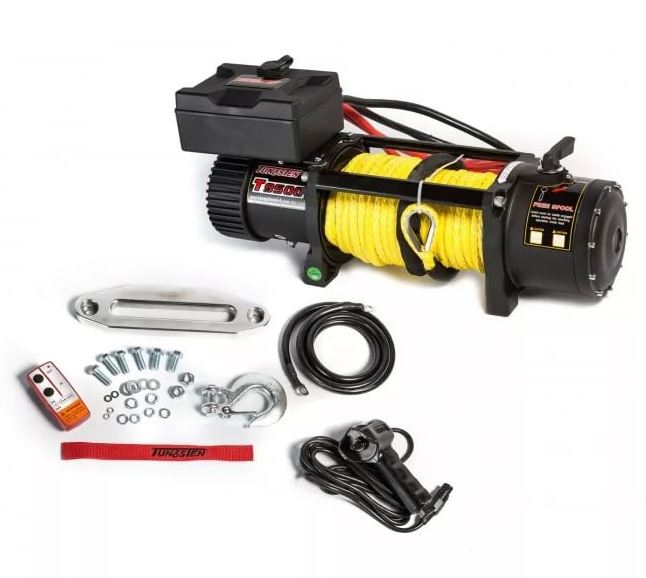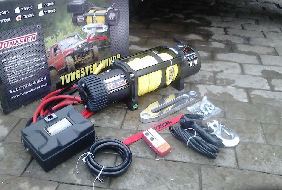 Автомобильная лебедка Tungsten T9500. БУ 1 поездку. Отличный вариант, трос синтетика, 2 пульта (проводной и беспроводной).