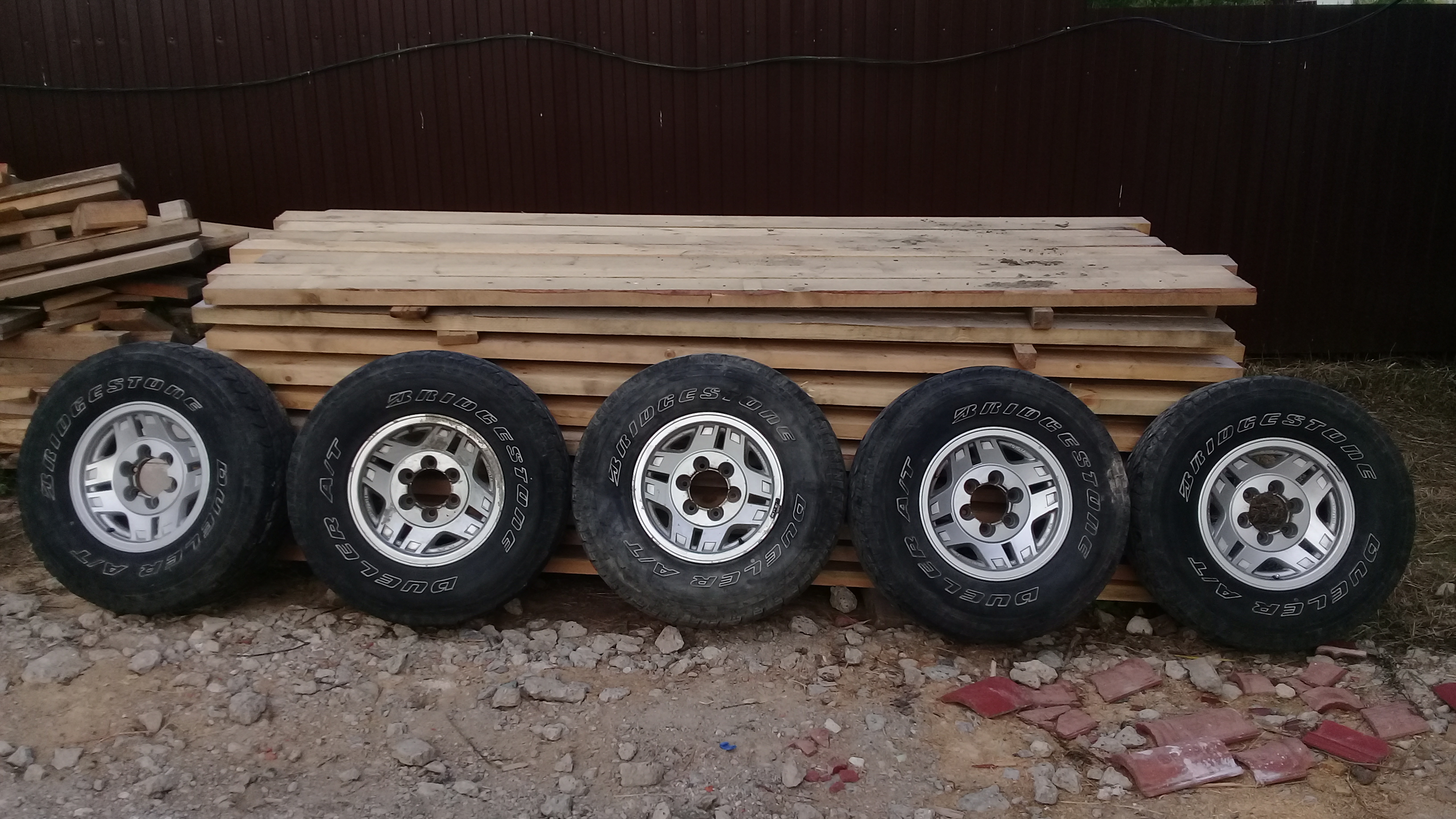 Резина Bridgestone Dueler AT 31х10,5, 2012 года выпуска, на 2 шт. слегка неравномерный износ, 2 шт. в хорошем состоянии,1 шт. без износа. На четырех (кроме запаски) присутствуют микротрещины в зоне протектора (не травит, совсем), резина мягкая, не дубовая. Боковины целые, заплаток/жгутов нет совсем. Снял с авто 2 недели назад, ездил каждый день - не спускают, не бьют, грыж нет, все в норме.