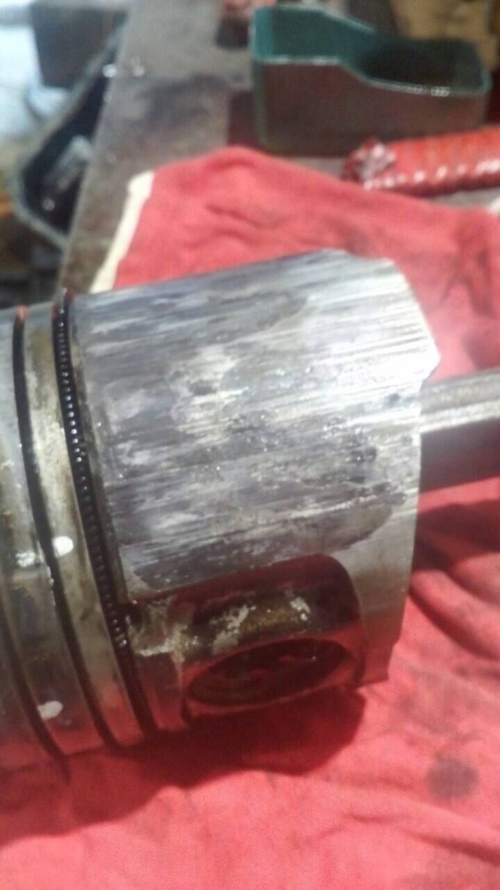 Имеем двигло 4м40т, контрактный с пробегом до 150 тыс. В собранном виде задиры на 1 цилиндре не чувствуются (поршень находится в НМТ), при извлечение поршня имеем ахтунговое состояние поршня, колец, нижней части цилиндра на высоту поршня, задиры чувствуются "ногтиметром", есть подозрения на неисправность масленой форсунки охлаждения (забита), но это пока подозрения. У кого какие есть соображения. Возможно ли отделаться заменой поршня и колец? Следов от обломков свечи на поршне нет.