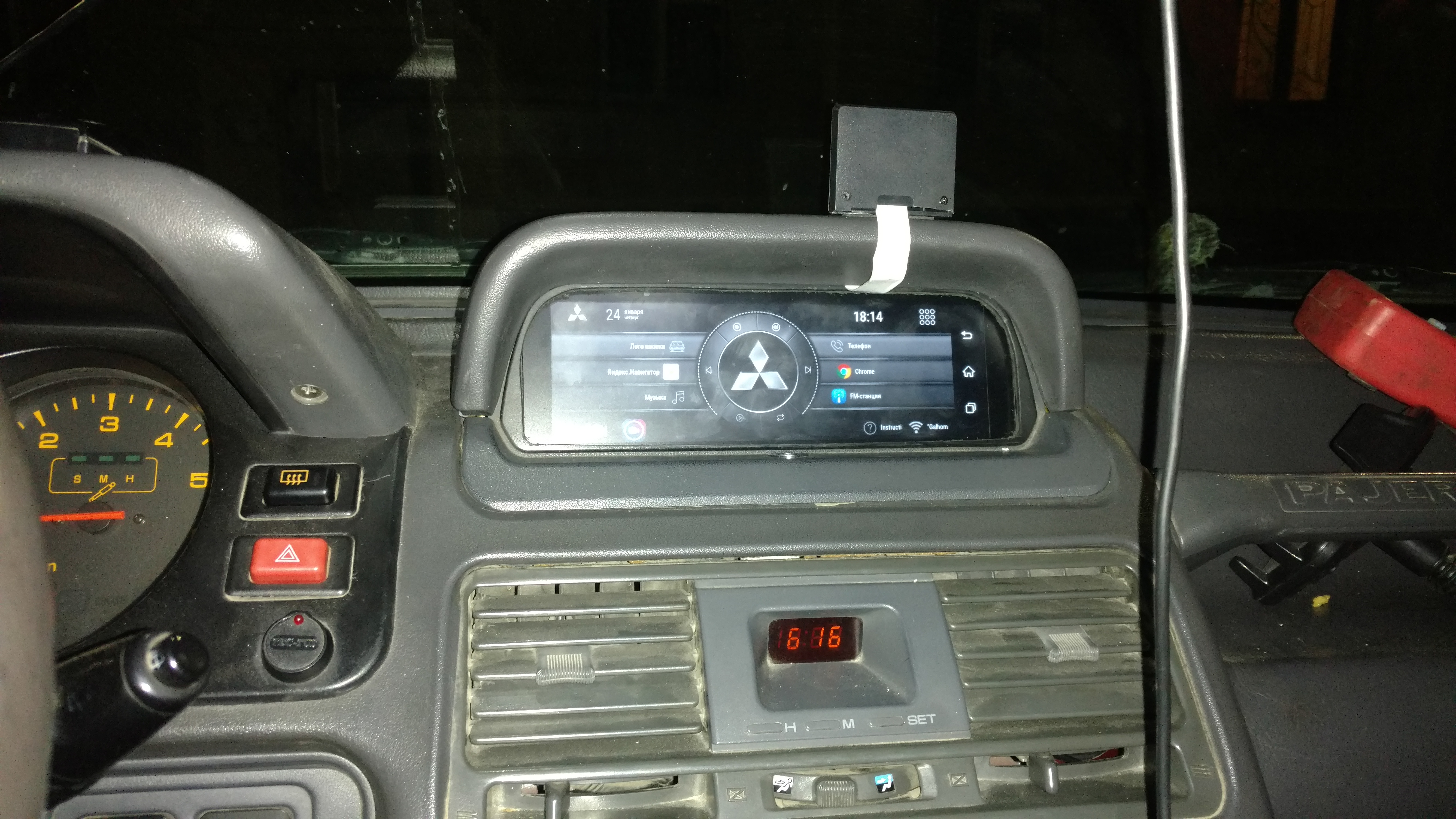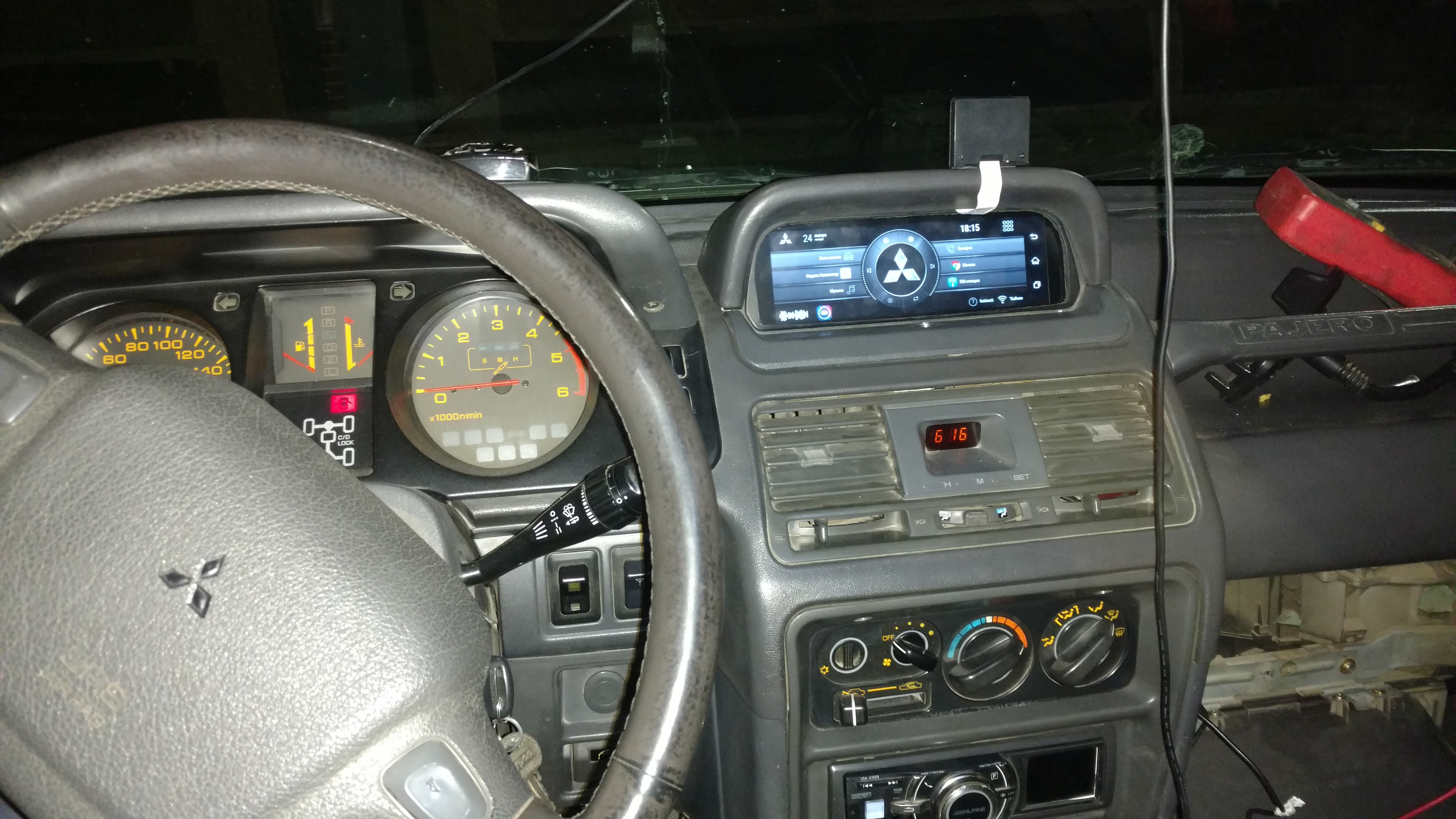 - 1din с выдвижным монитором тоже как-то не впечатляет - колхозно выглядит и перекрывает управление печкой, к тому же сомневаюсь я в прочности механизма в условиях бездорожья.