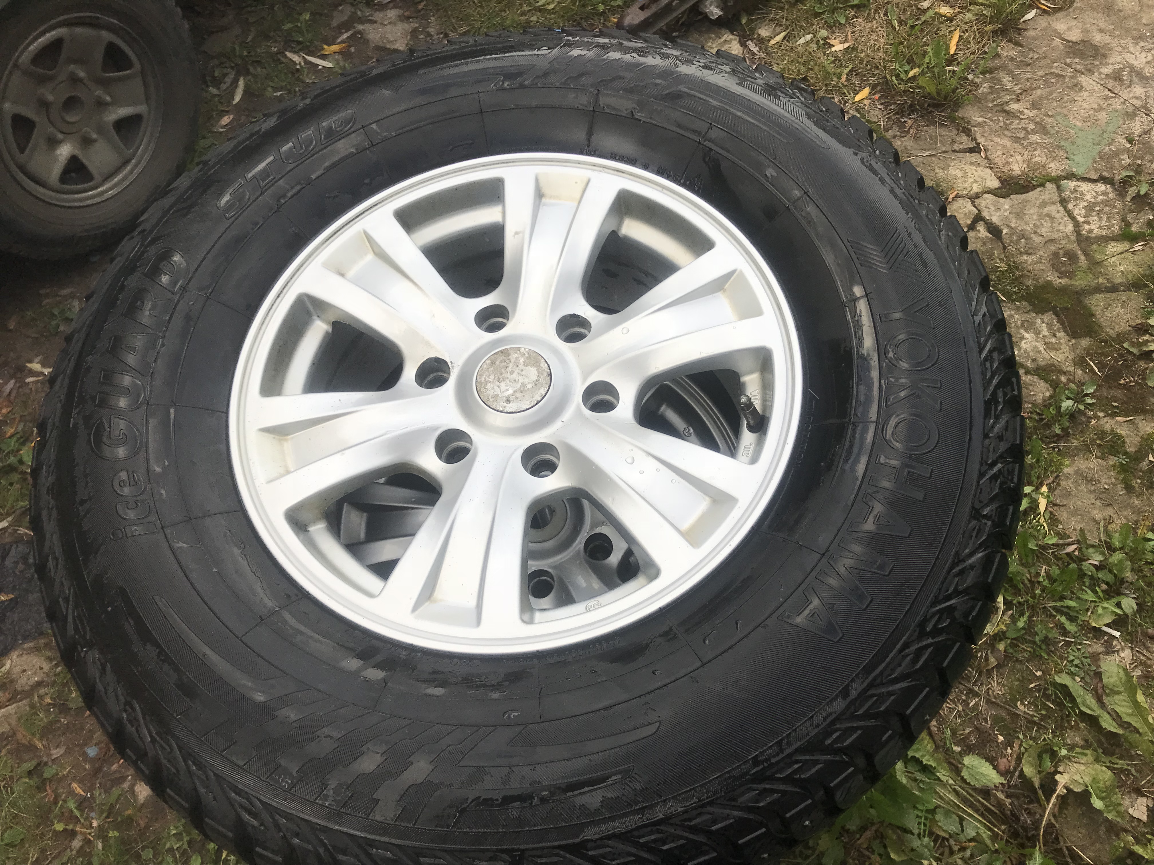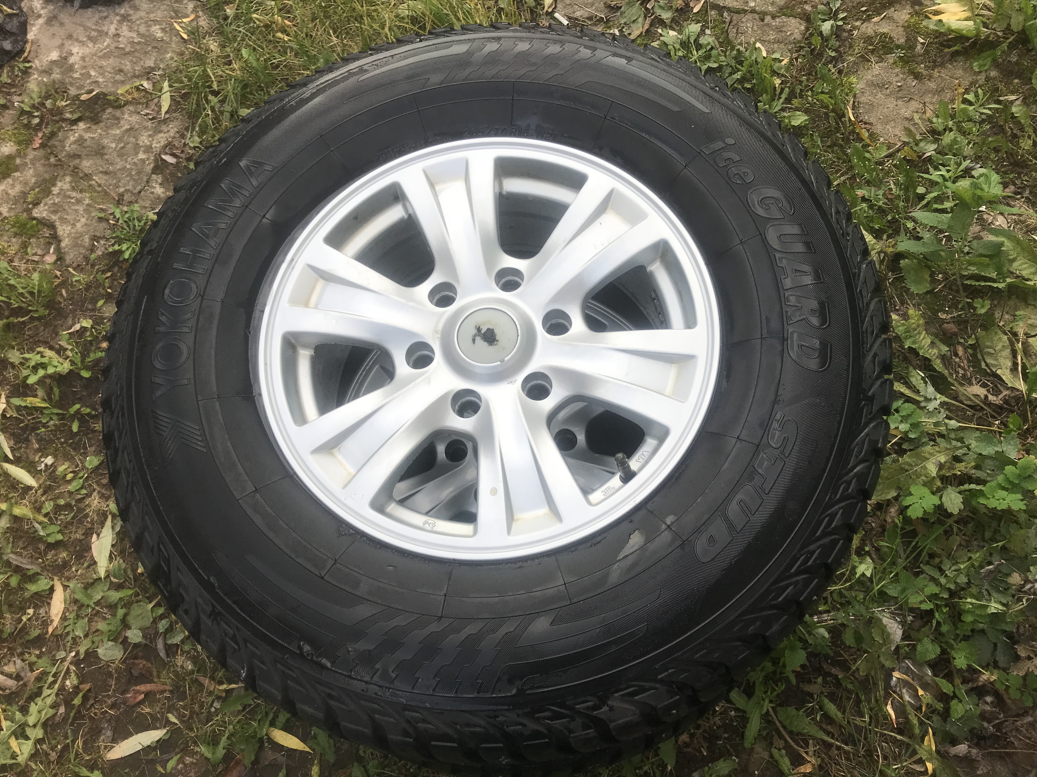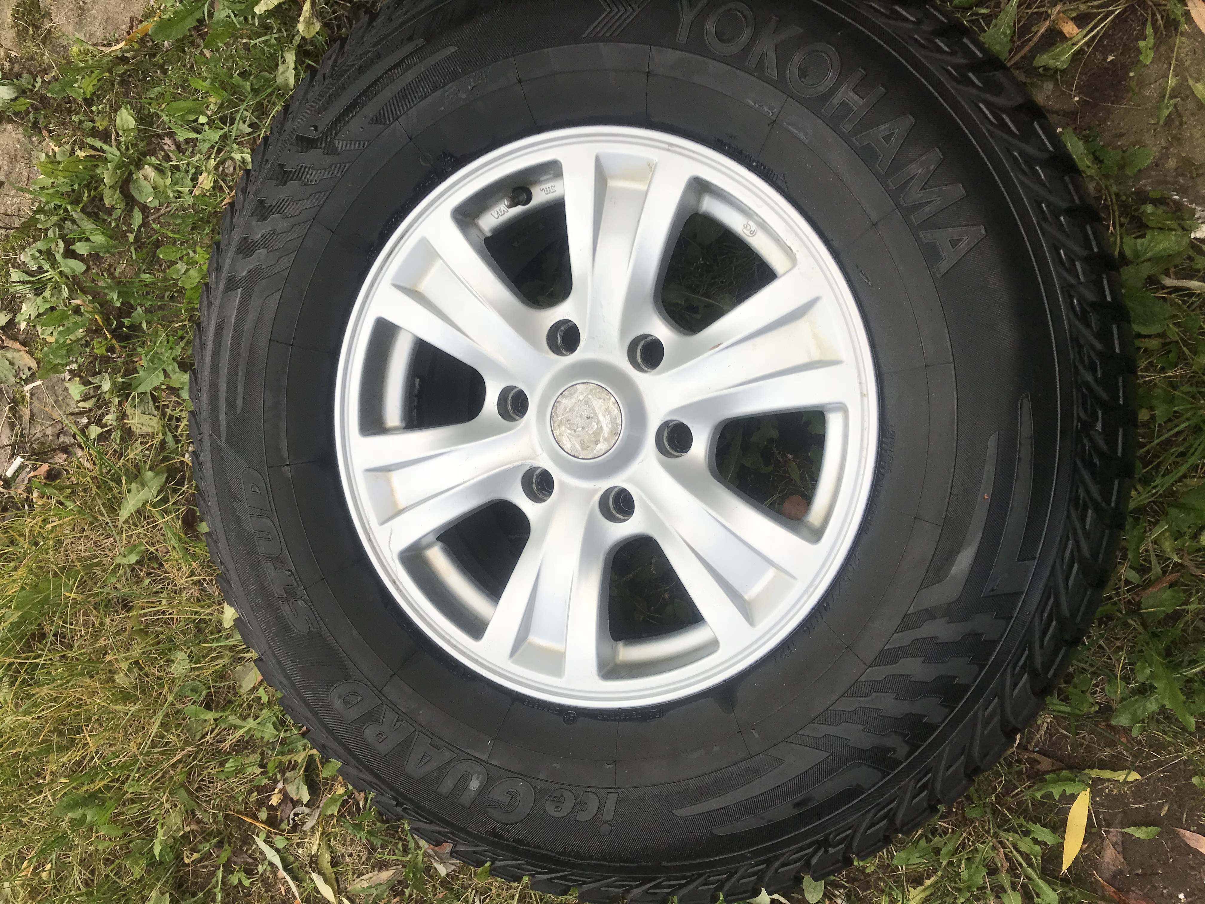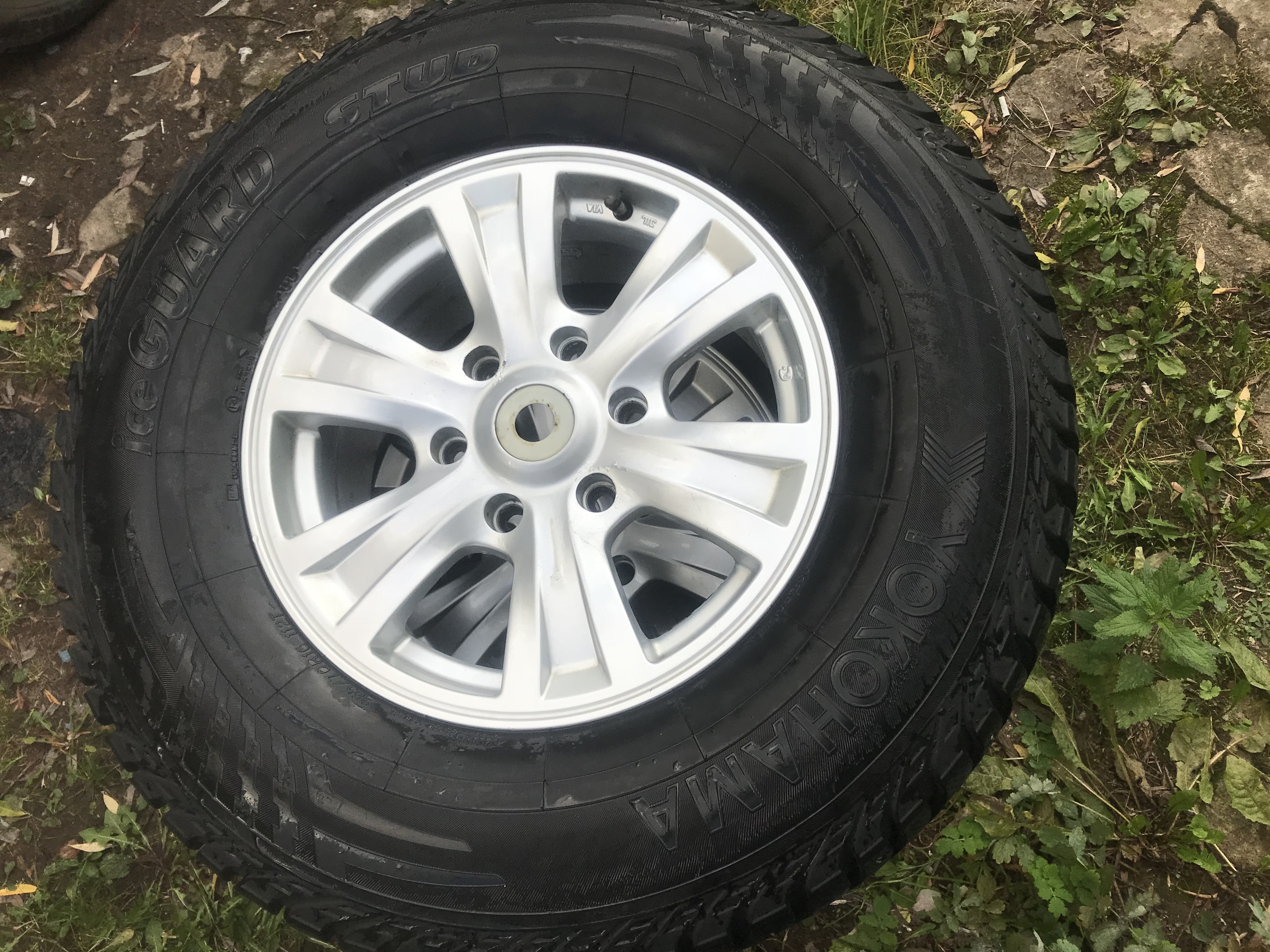Yokohama ice guard stud 265/70 R16 на дисках от Mitsubishi Pajero Sport. Остаток шипов 60-70%, на двух колесах небольшие повреждения протектора. Стояли на Pajero 3. Территориально Москва, отправлю в регионы. 16000р за все.