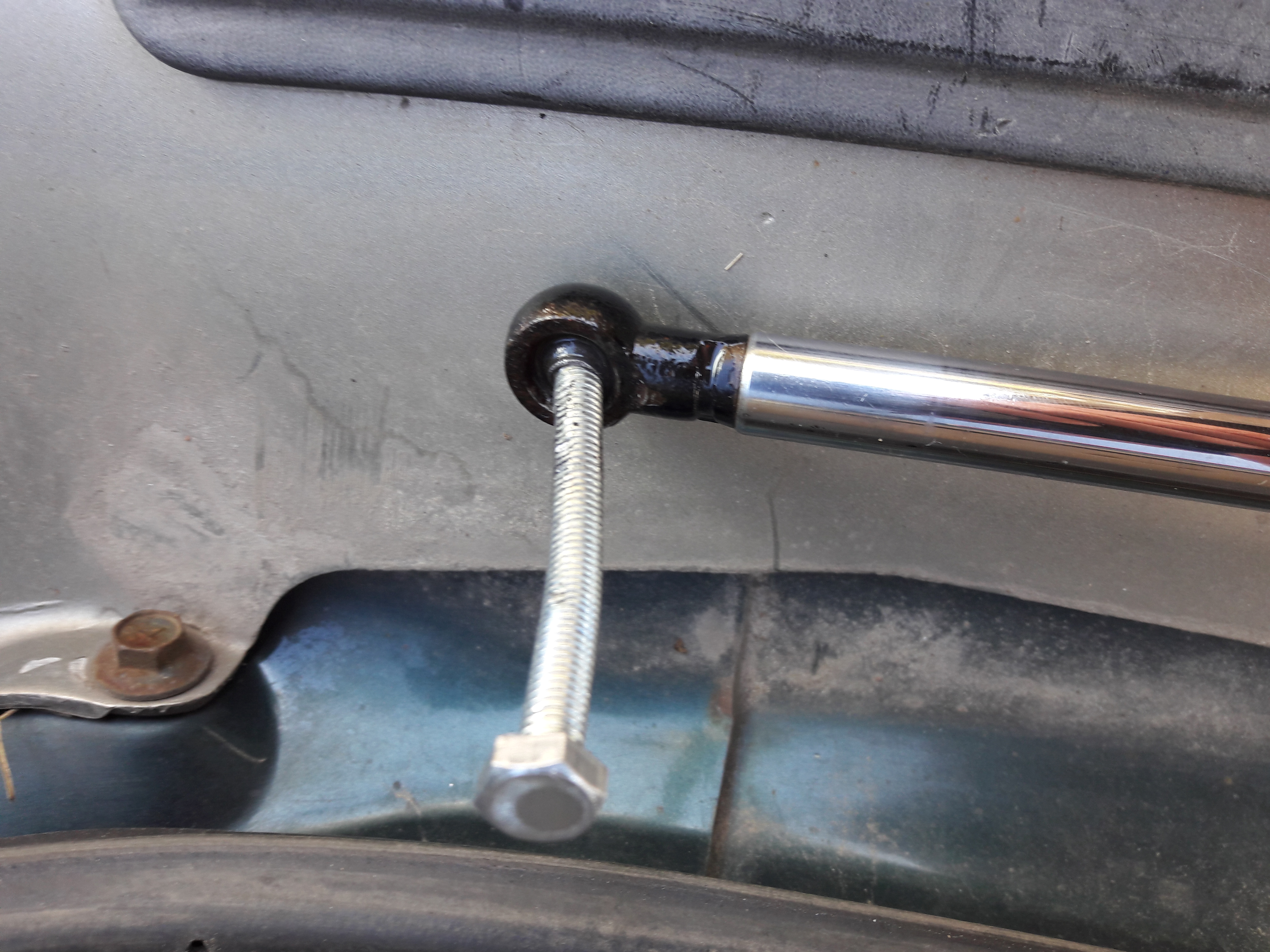 Причина - шарик в нижнем пальце шарнира просто закис намертво в амортизаторе , заклинил и сломался при открытии(вращении).