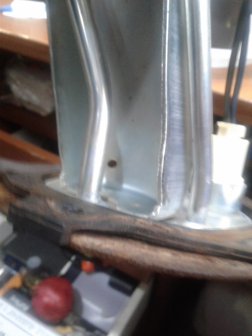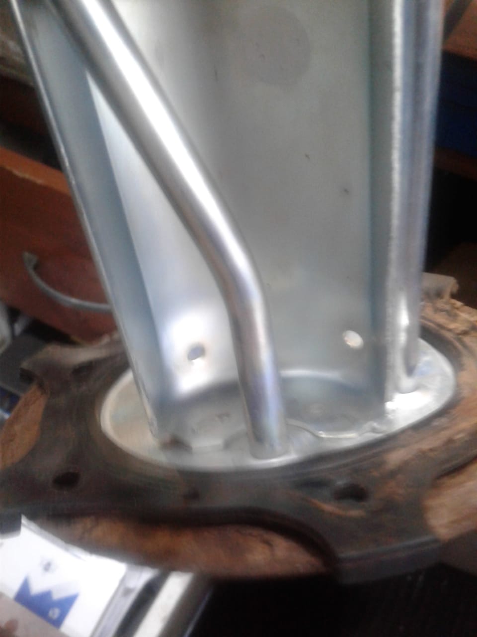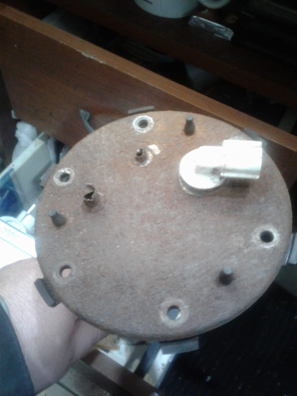 это моя крышка - кронштейн, удачно и аккуратно снятая с бака. вроде не все так плачевно!