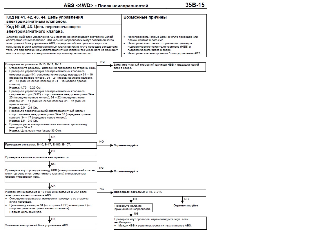 Диагностика показывает 41 ошибку блока абс (соленоид клапана переднего правого колеса).