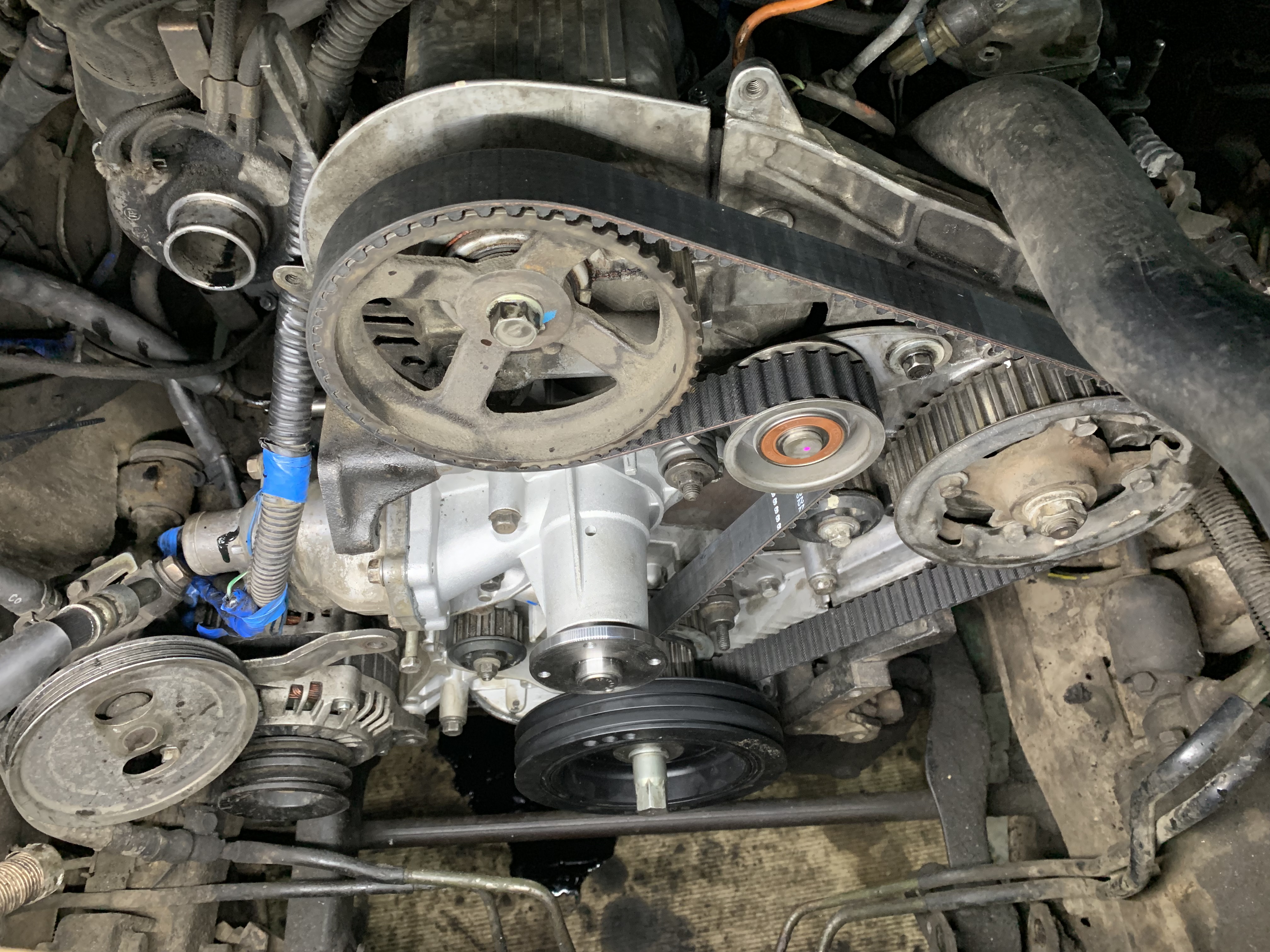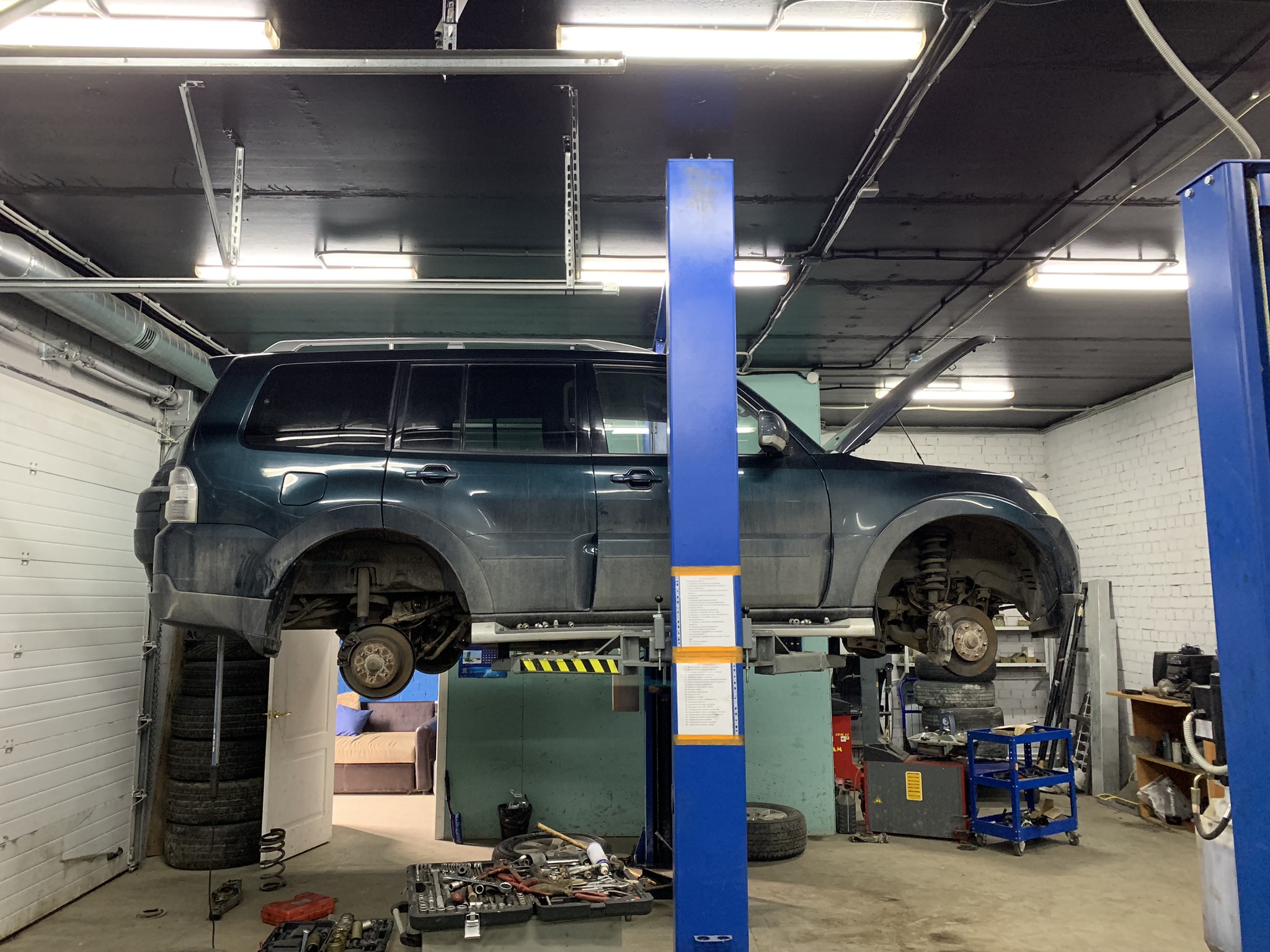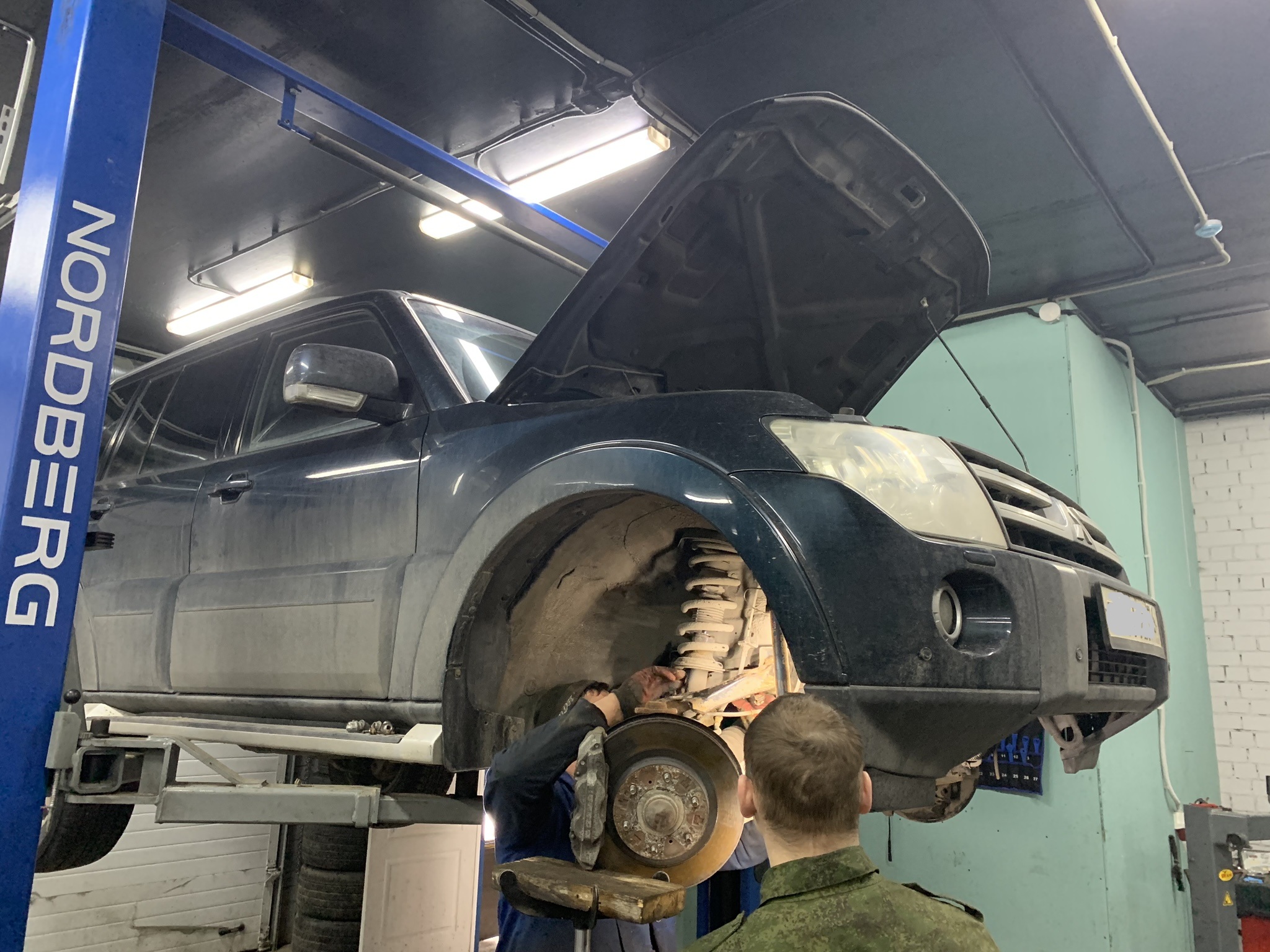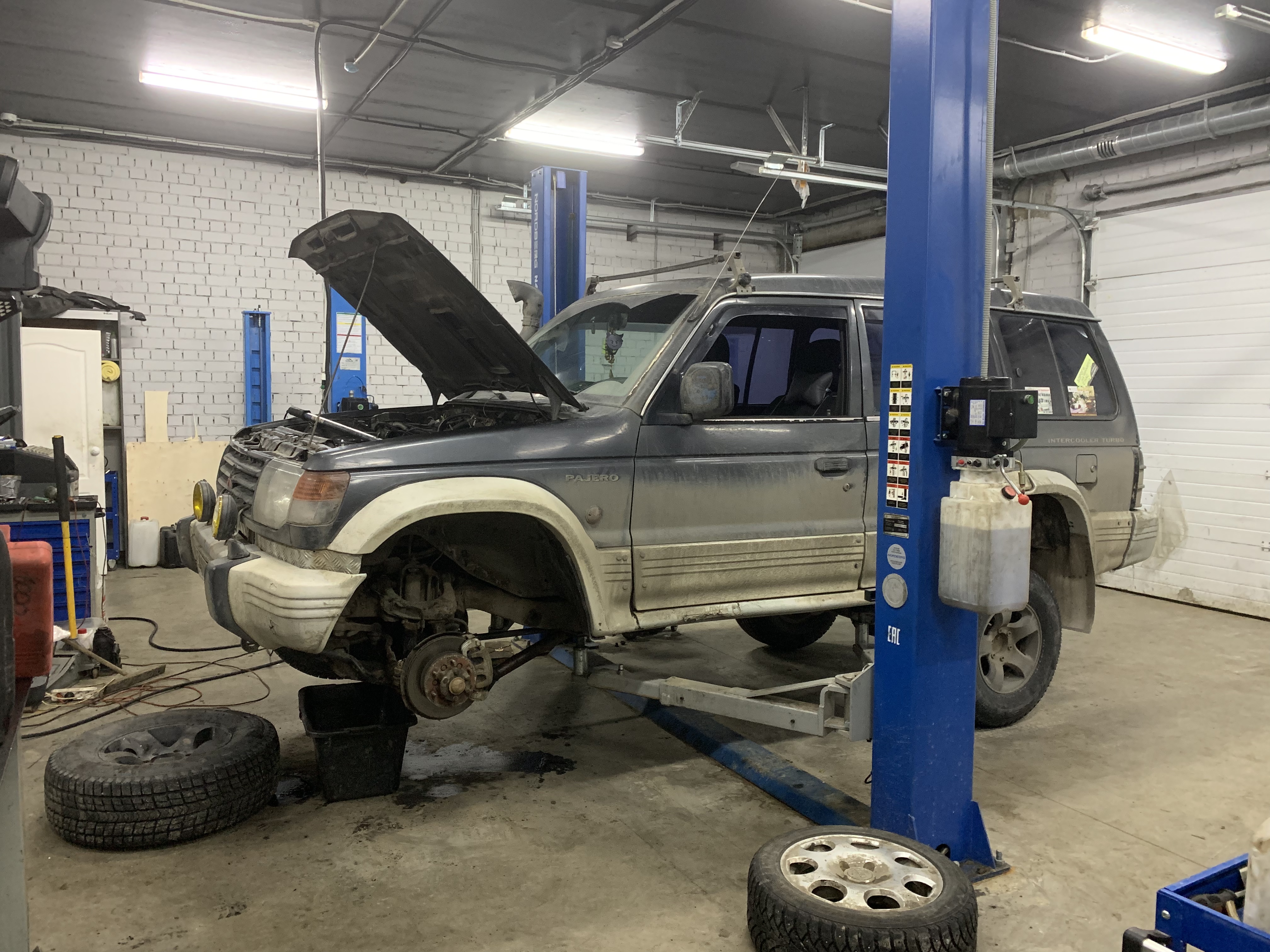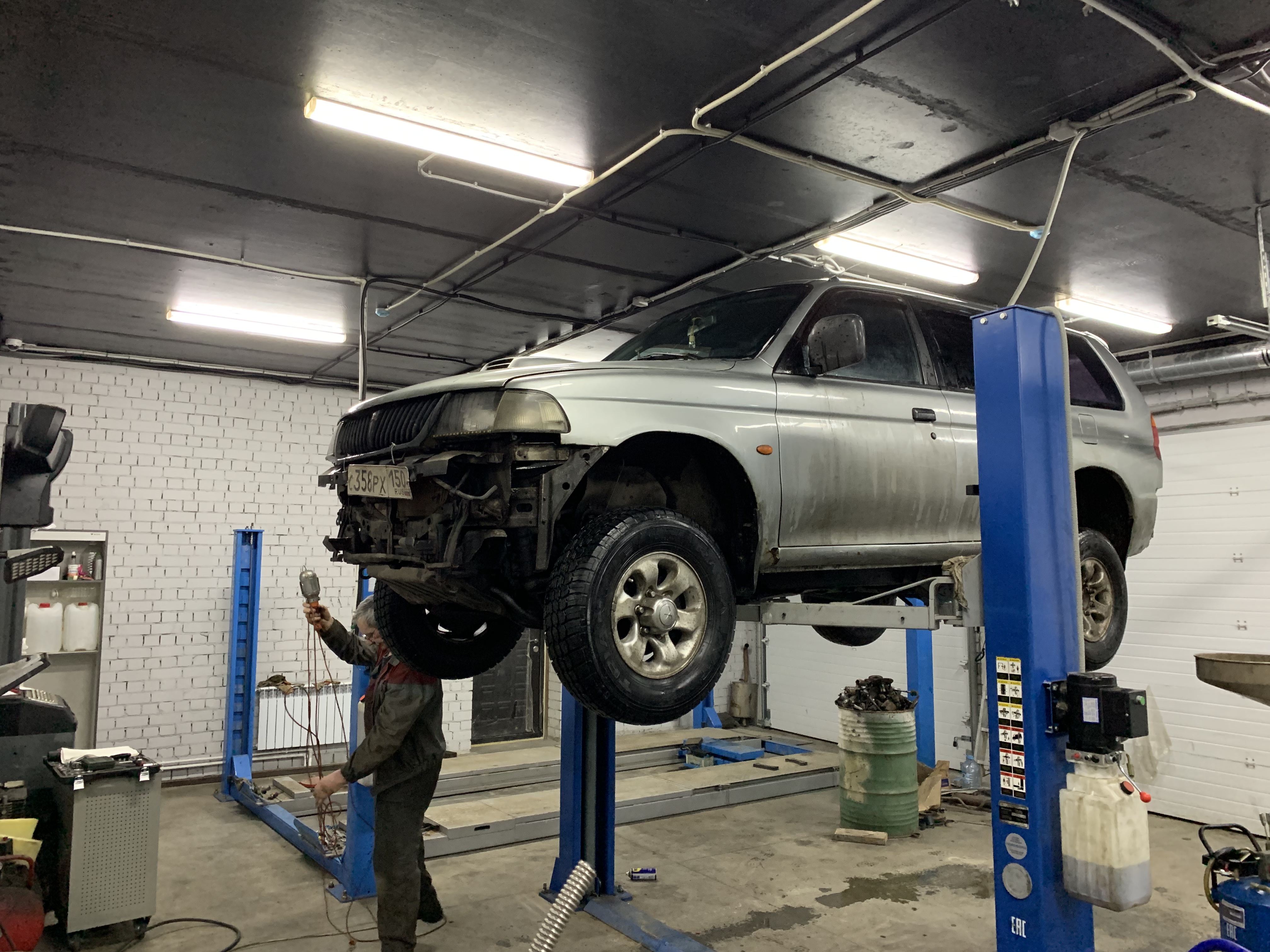 Клубный паджерик 2 в ремонте. Замена масляного насоса, Восстановление посадочного места шестерни ГРМ, на коленчатом валу, ну замена подшипника компрессора кондиционера. А так же проверка развала / схождения на 3D стенде. Оказалось все в пределах допусков.