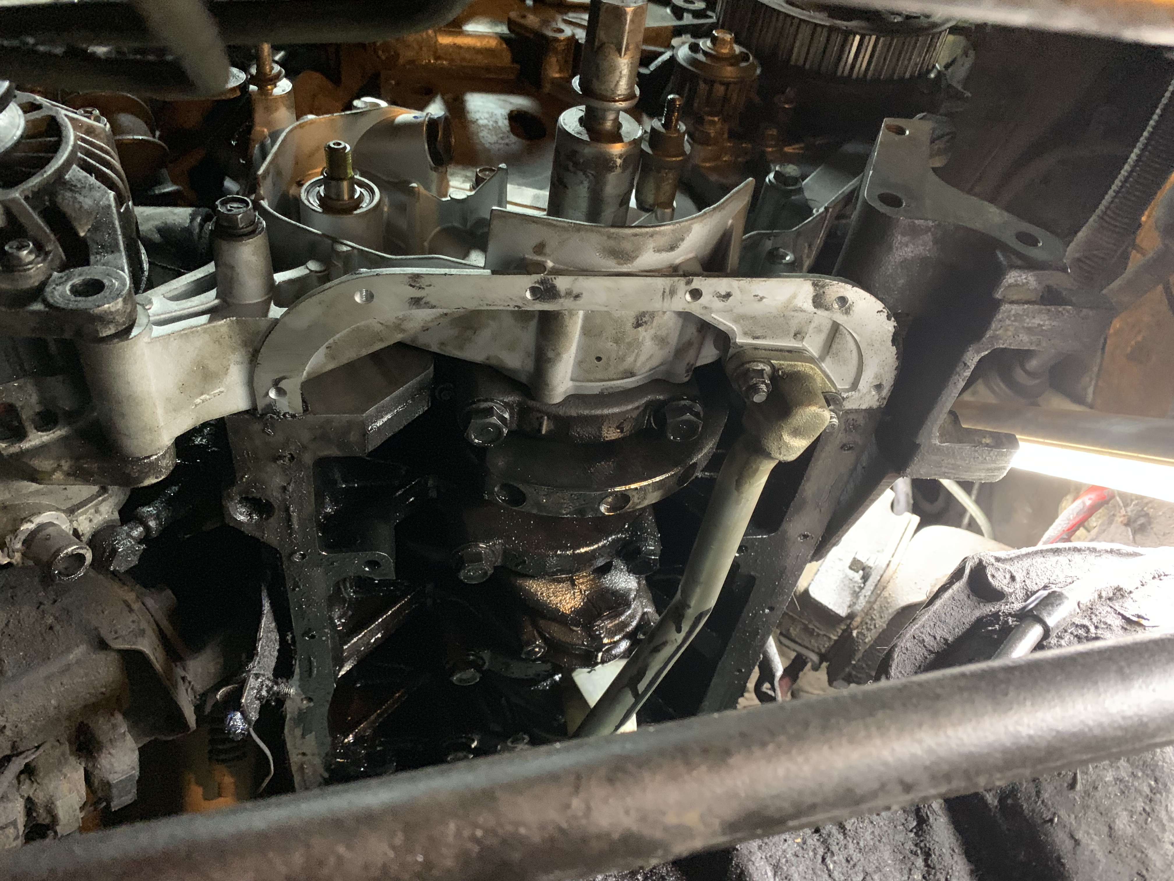 Так вот. Проблемы начались с установки этого двигателя - сначала местные криворукие мастера (их винить нечего- они отказывались от паджеры, умоляли ее забрать и больше им не показывать никогда) проигнорировали мою просьбу использовать фиксатор резьбы на болту коленвала, а потом, видать из-за того, что уже пол года ставили мотор но никак не могли поставить - генератор посадили без втулок, а у делик 86 года ухо на маслонасосе гораздо Уже, чем у паджеры 94 и её, паджеры, генератора. А они просто болт захреначили, с зазором сантиметра в три (!) поэтому за пару дней там было все разбито и выломано. Ну а потом отпал и шкив коленвала, разбив сам нос вала, шпонки, две шестерни/звездочки (ГРМ и БВ) и мое сердце.