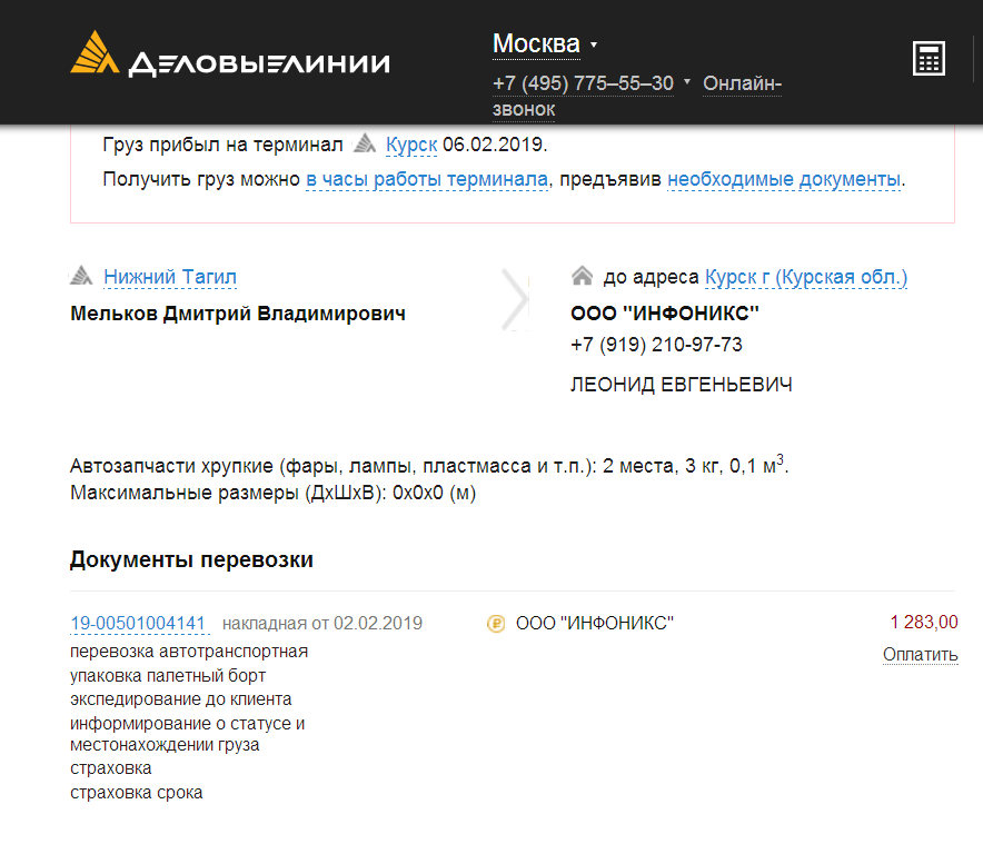 А ты чего груз не получаешь? Он с 6-го числа на терминале торчит...