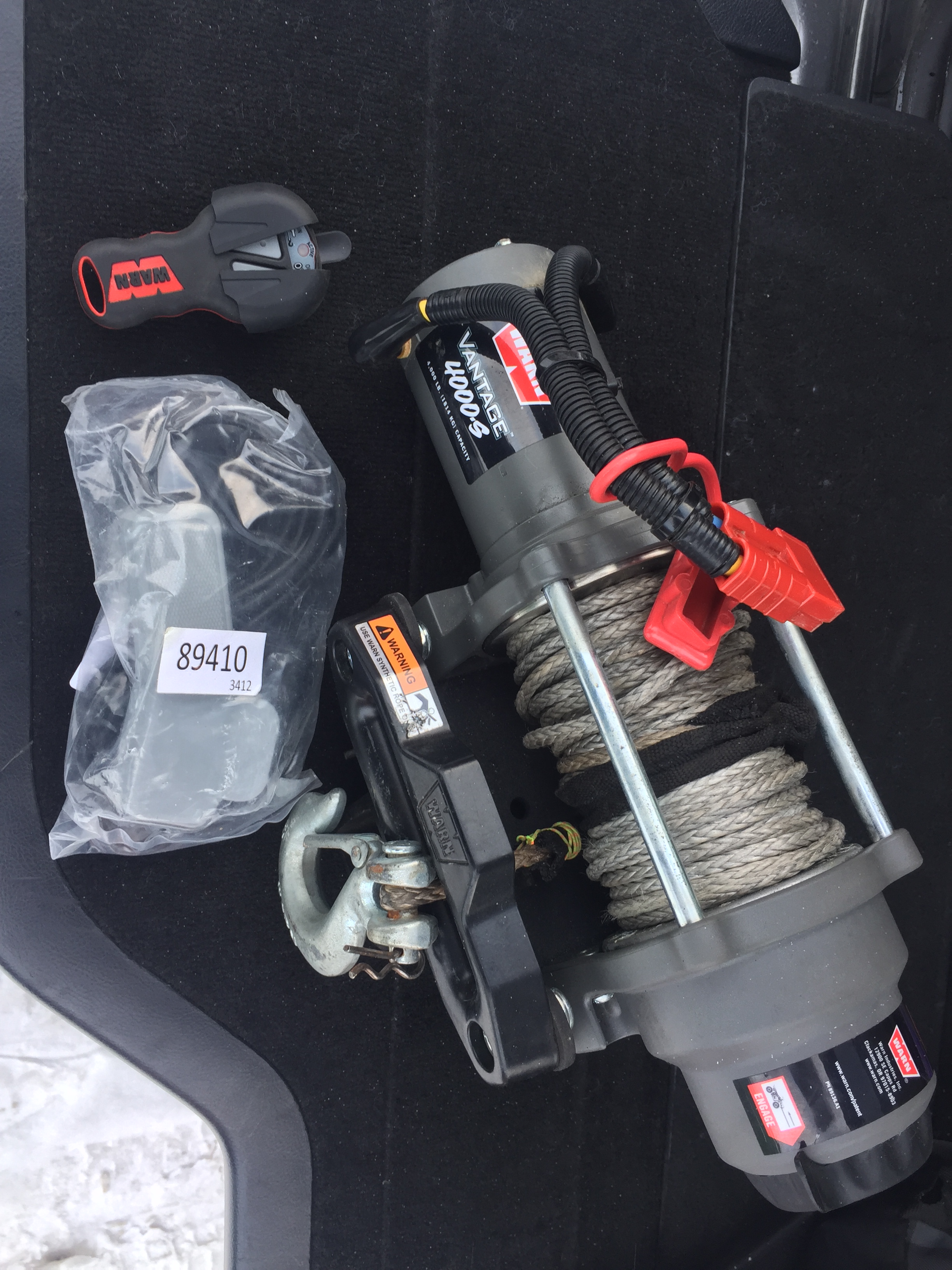В комплект входит лебедка с синтетическим тросом, крюк ,2 пульта, проводной и беспроводной пульт управления(и блок для него,но с ним надо разобраться), площадка для установки лебедки, комплект силовых проводов для подключения лебедки, комплект кабелей для подключения.