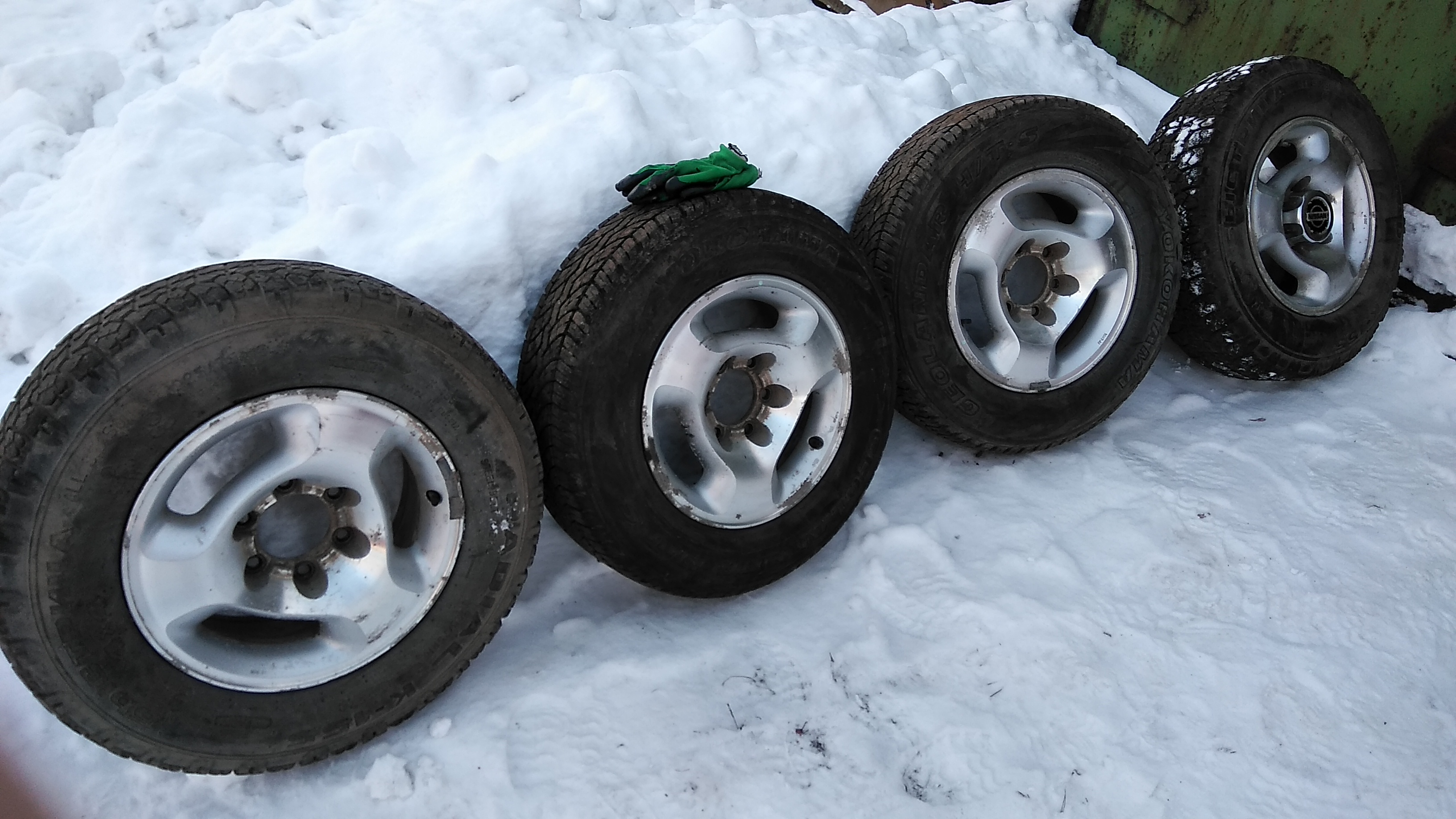 Всем привет. Продам 4 колеса в сборе, лето. Передние Yokohama Geolandar H/T-S 225/70/16 остаток протектора 8 мм. Задние "быстрица" к-155, размер тот же, остаток протектора 4 мм. Диски 16", 139.7*6, ЕТ 25, ширина 7", оригинал ниссан, есть мелкие косяки по лкп. В комплекте 2 колпака на фото и колёсные гайки 24 шт.