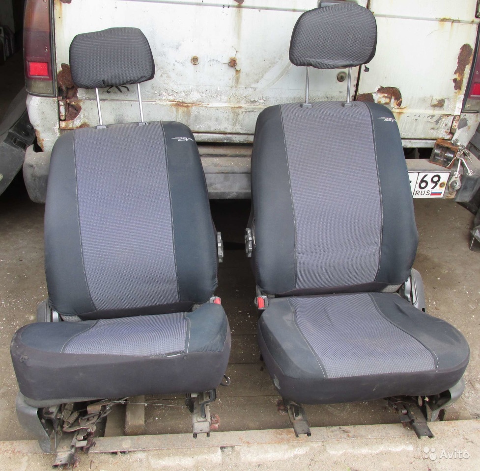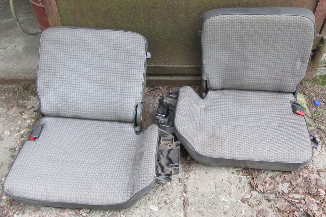 Первый ряд - в чехлах, простые, не подрессоренные, без электричества, механизмы в порядке.