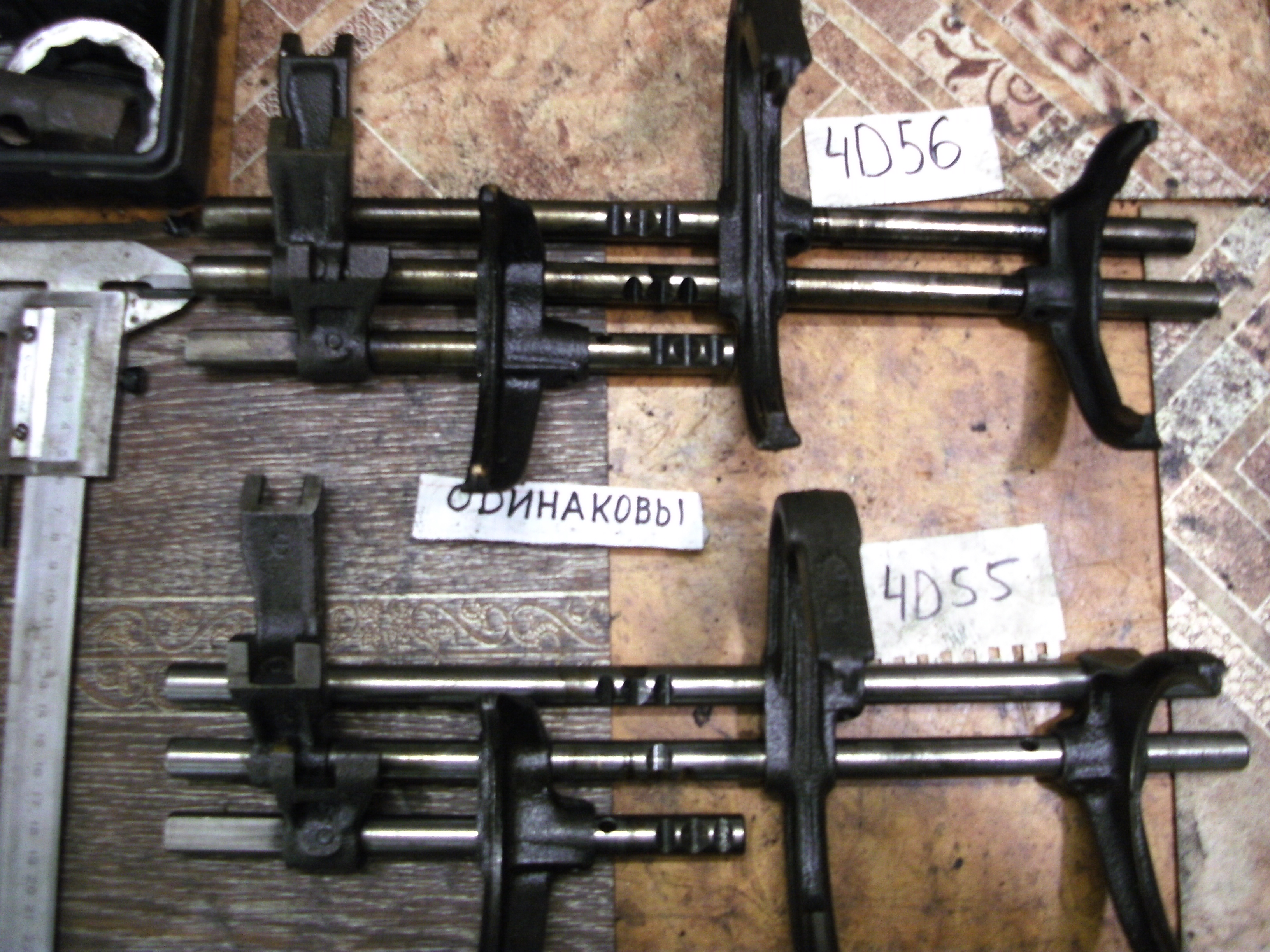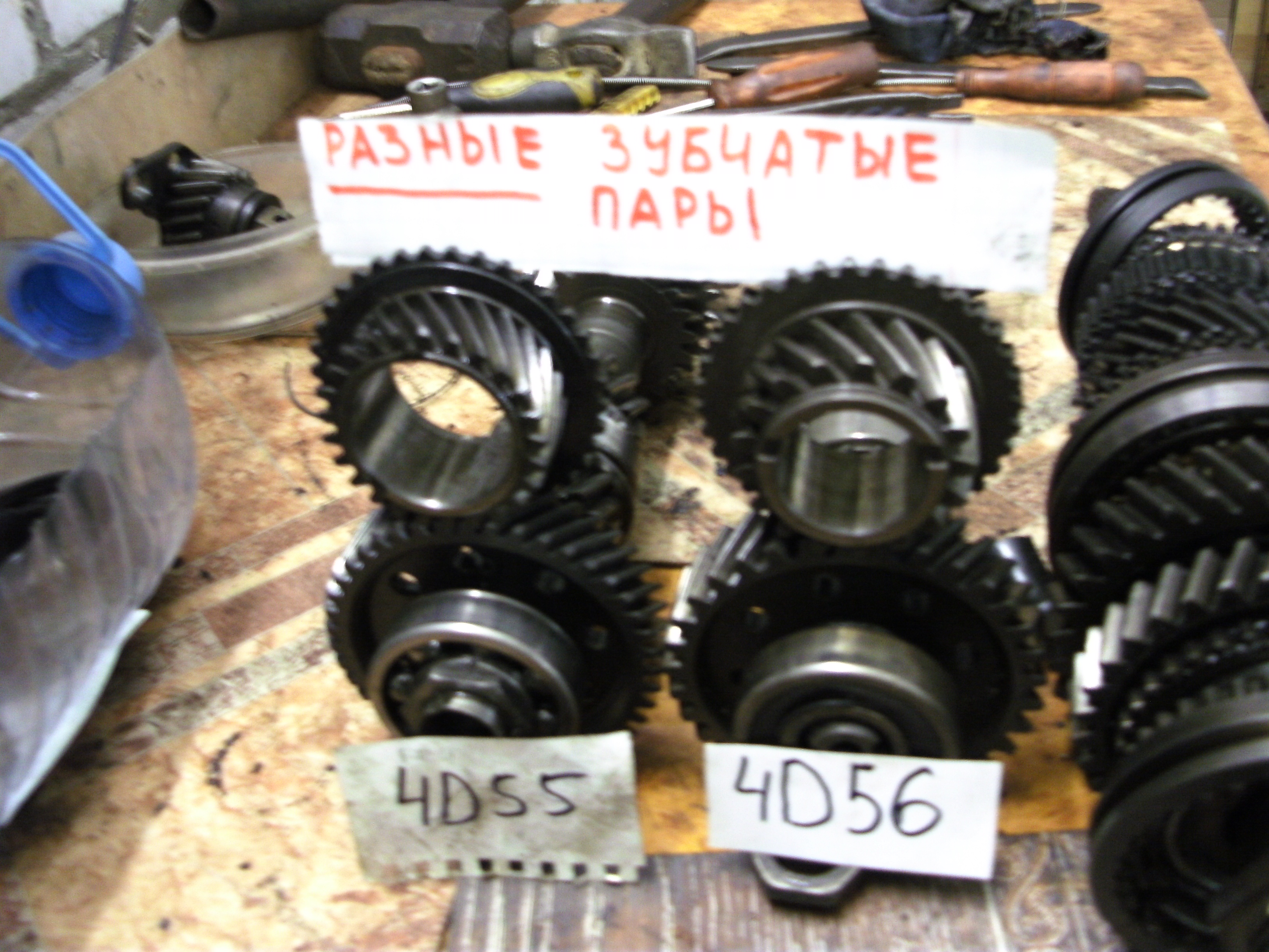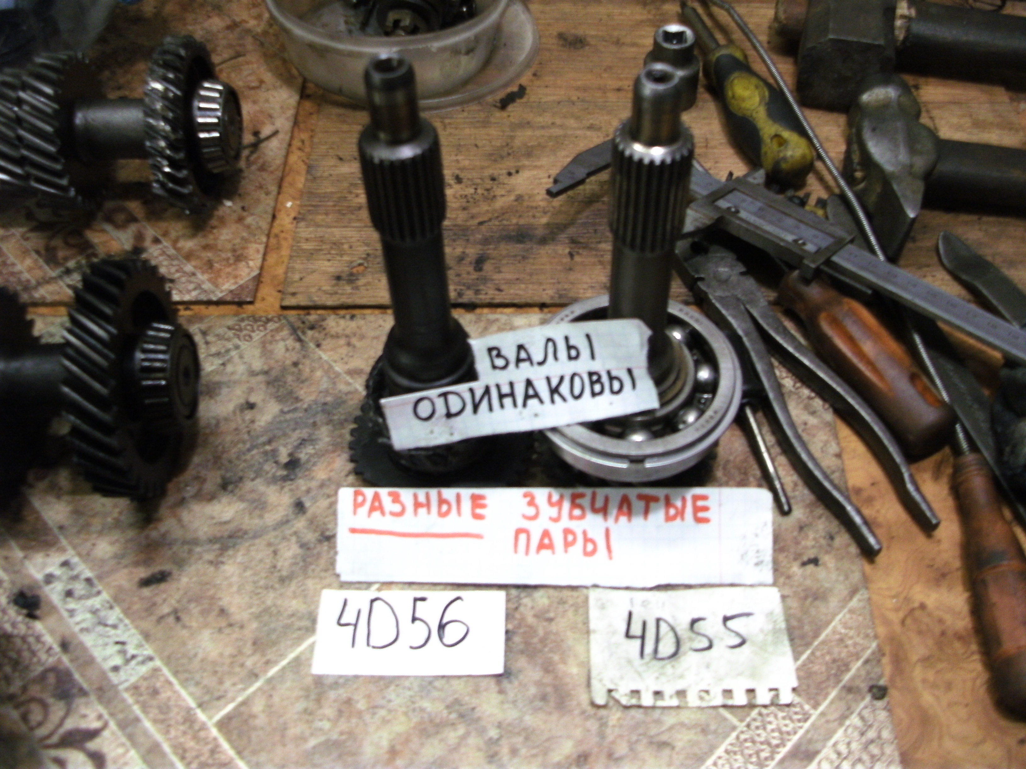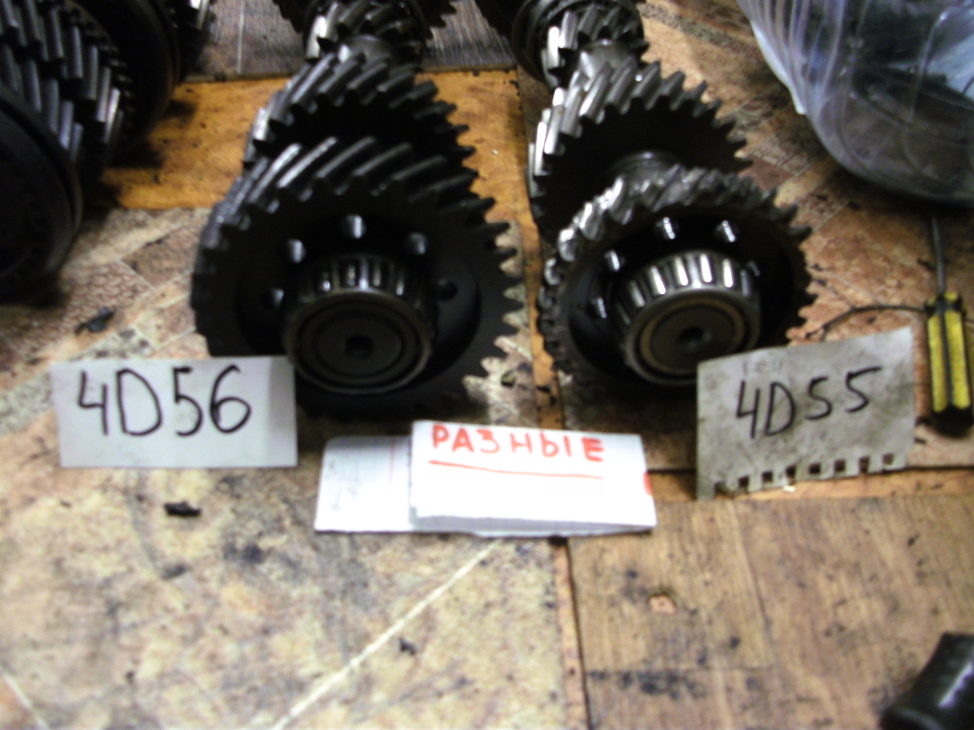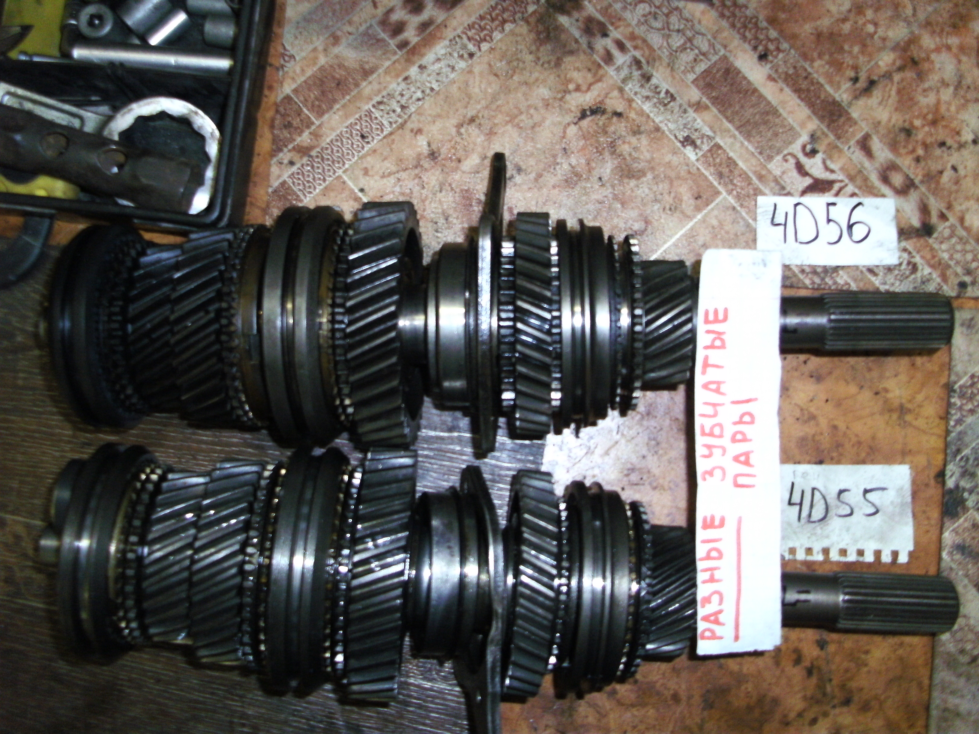 На двигатель 4D55 № КМ145 : вал концевой износ , вал промежуточный износ , вал вторичный - есть живые шестерни , вилки
