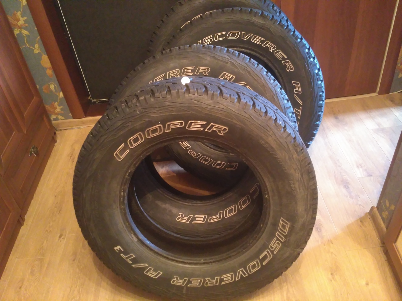 В отличном состоянии Cooper Discoverer A/T3.Одна маленькая латка от тонкого гвоздика.цена 14000р.тел 8920692392один.