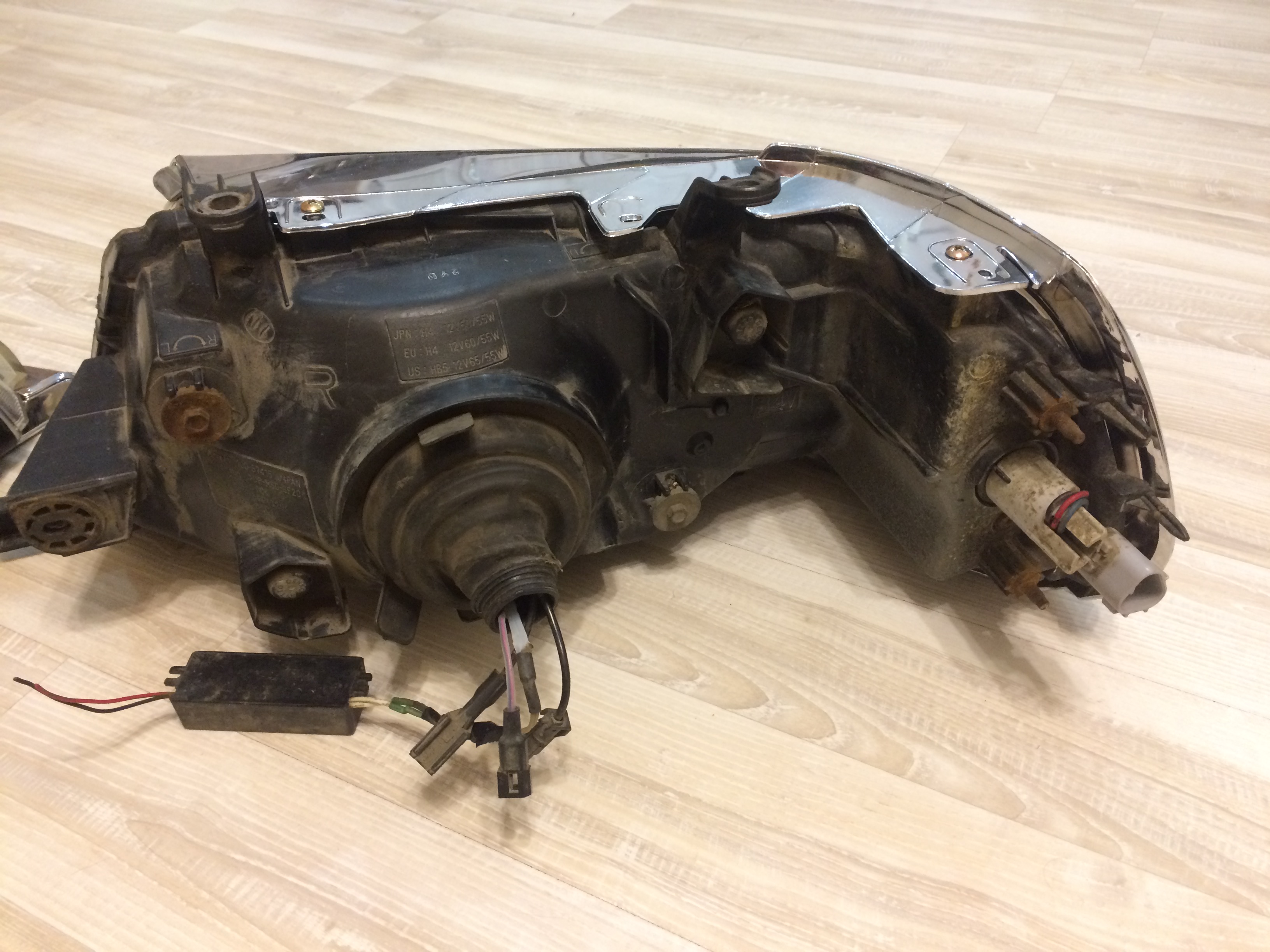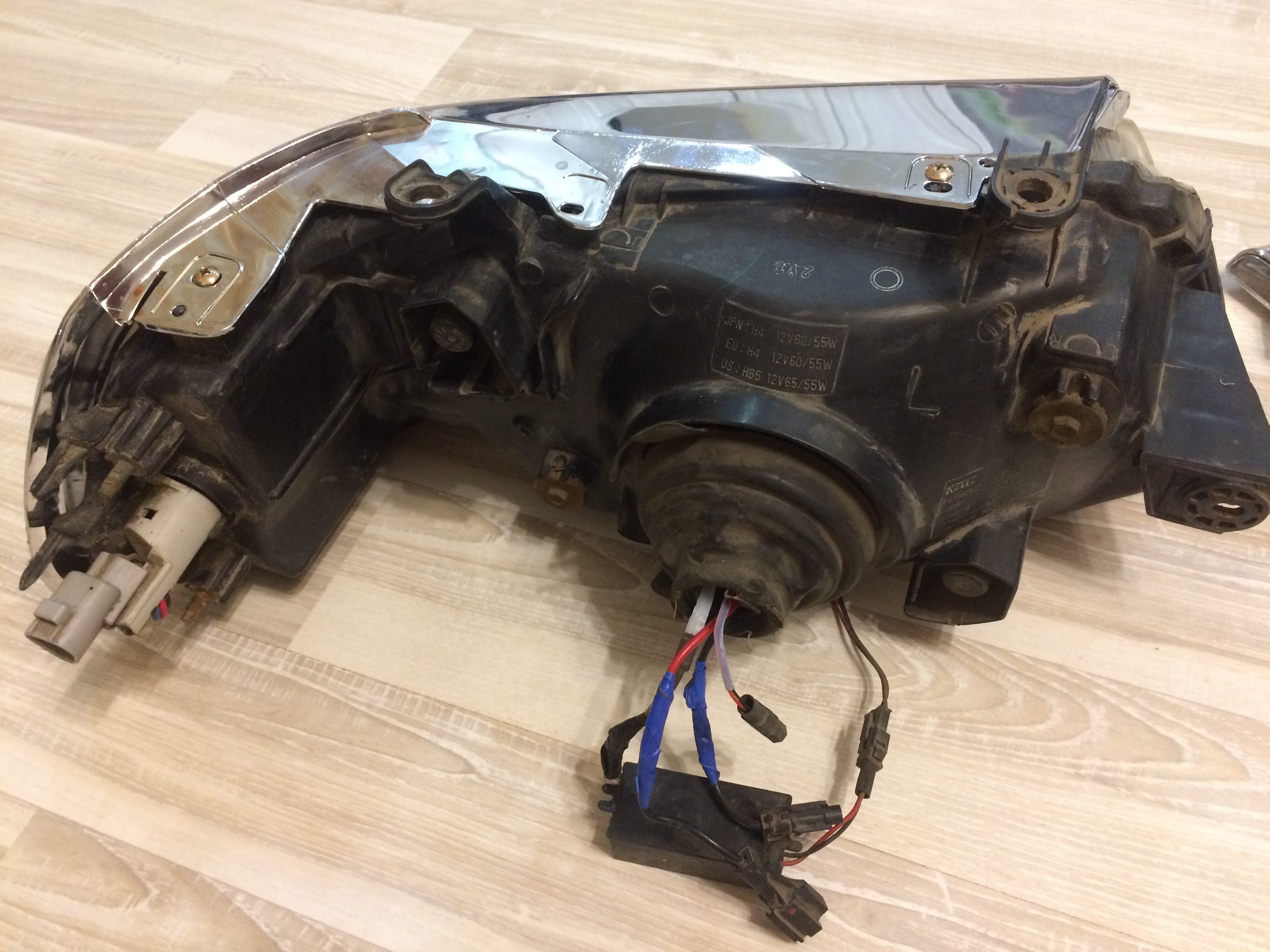 по оригиналу надо посмотреть. Предыдущий владелец утверждает, что фары не менял (он единственный владелец автомобиля - пригонял сам машину). Под галоген надо смотреть по месту, вскрыв стекло фары, тк при откручивании гайки с обратной стороны фары линза может провалится внутрь фары. Мне надо было на учет поставить, а времени на переделку нет - потому я купил новые фары.