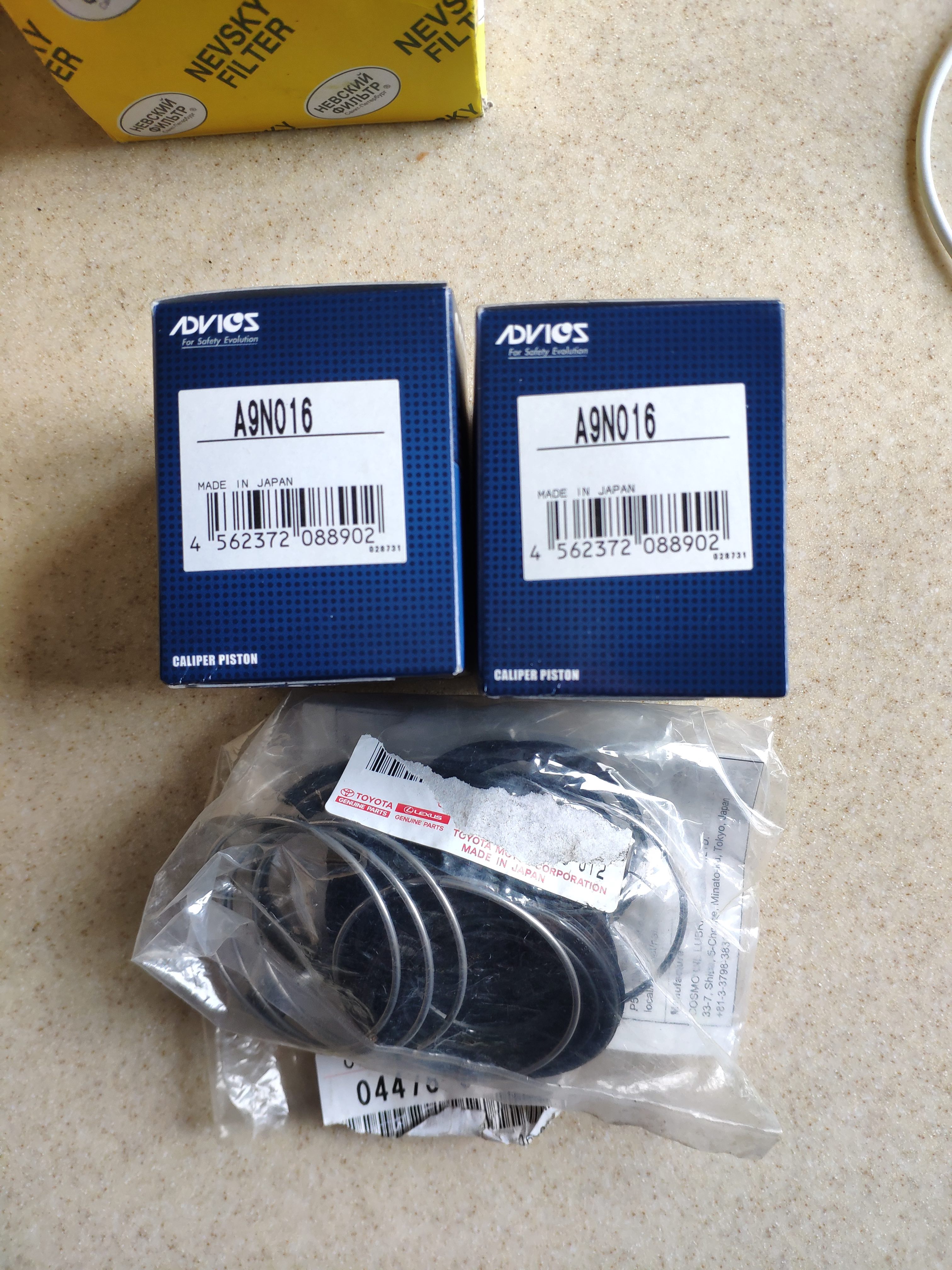 1) Поршни передних суппортов ADVICS A9N016 (2 шт) +ремкомплект на 4 поршня-1000 р