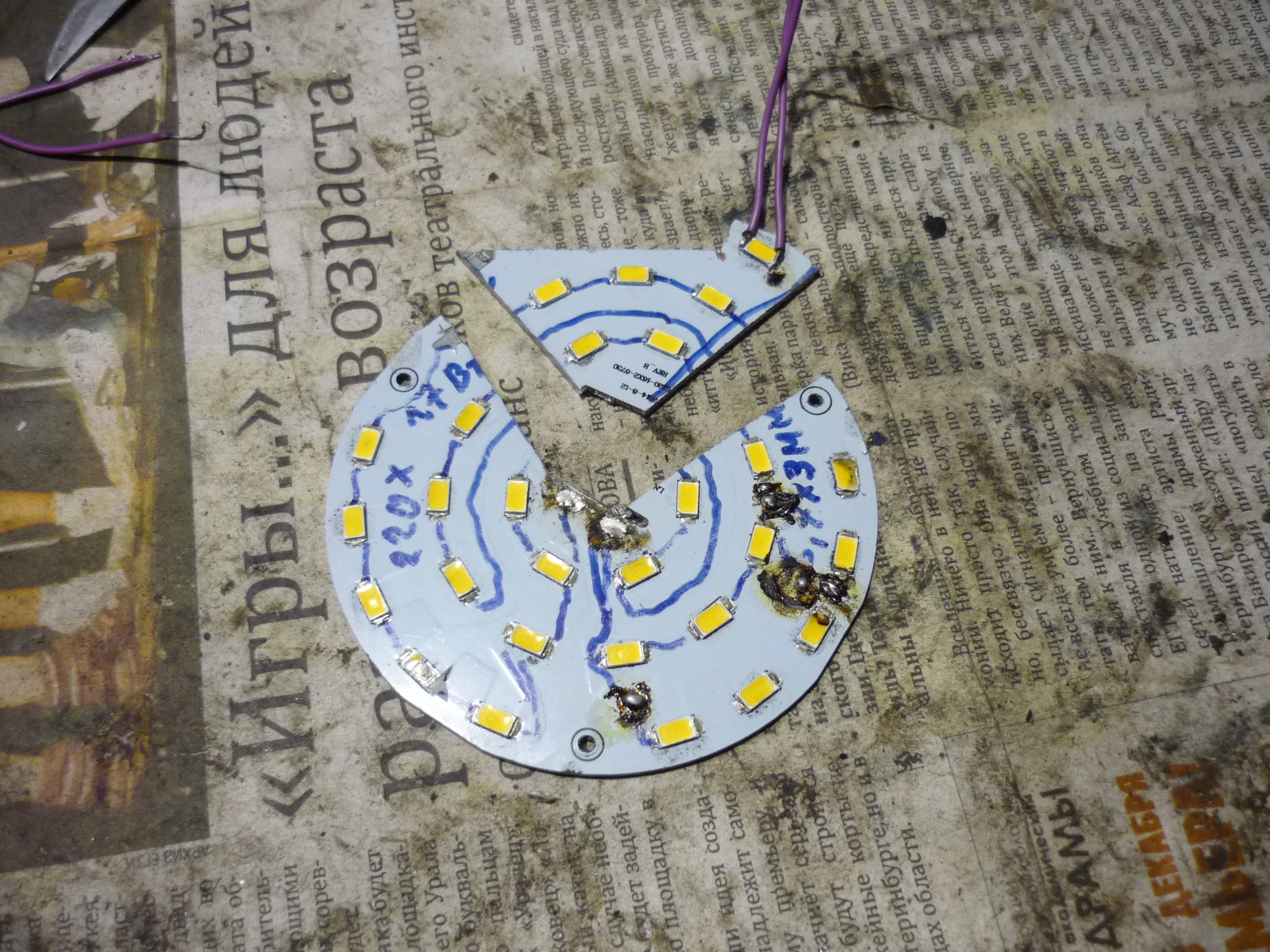 Светодиоды (SMD) в большинстве случаев целые оказались, сдох преобразователь.