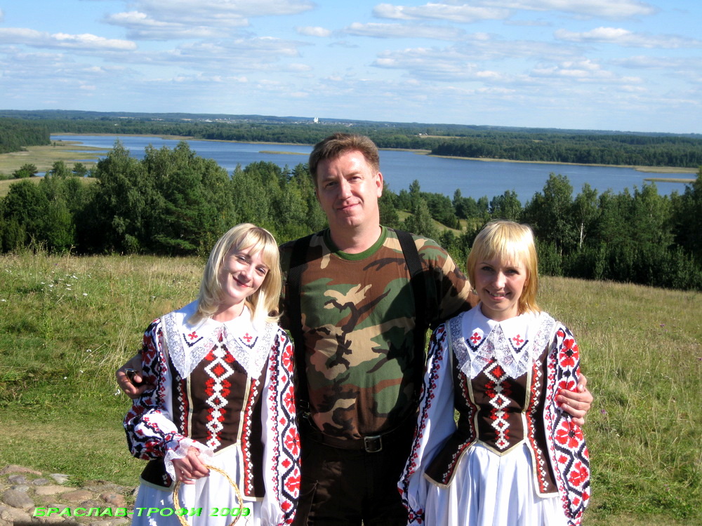 Но виды на озера открывались восхитительные. Неподалеку от площадки, проходила съемка музыкального клипа в белорусском стиле. Десяток девушек в национальных костюмах водили хороводы и весело имитировали пение. Дождавшись паузы, я выхватил двоих из них для фотосессии.
