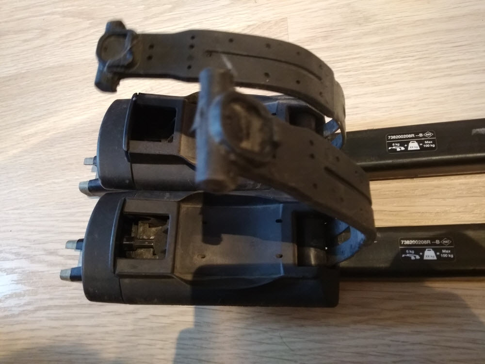 Каталожный номер багажника 738200208R. Состояние - потеряны 3 из 4-х концевых заглушек, покоцано пластиковое покрытие, что не влияет на эксплуатационные характеристики. Причина продажи - не встает на Дастер образца 2015 года.