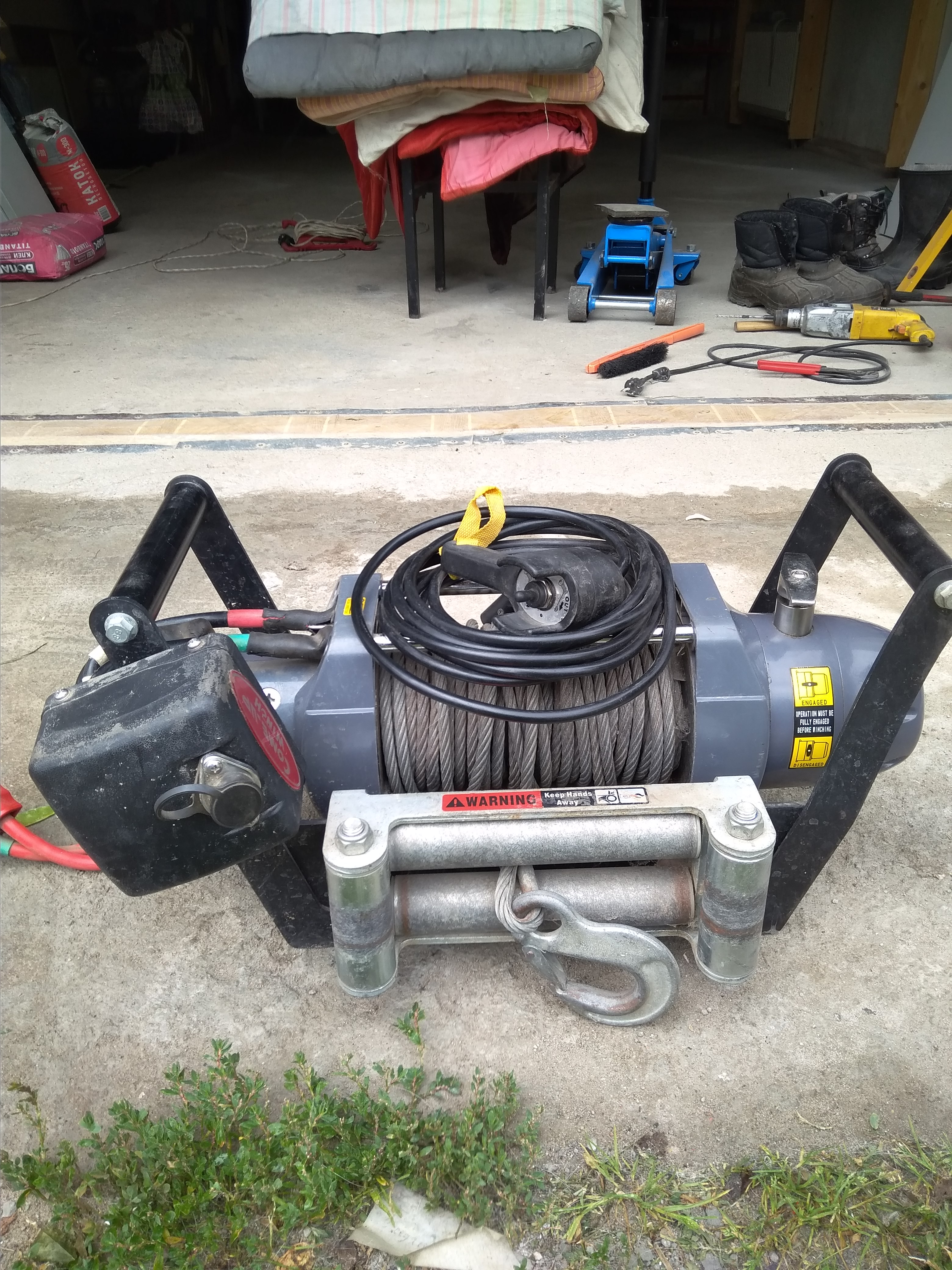 Продаю лебеду в комплекте с родным тросом, пультом, блоком, роликами и переносной площадкой под квадрат.