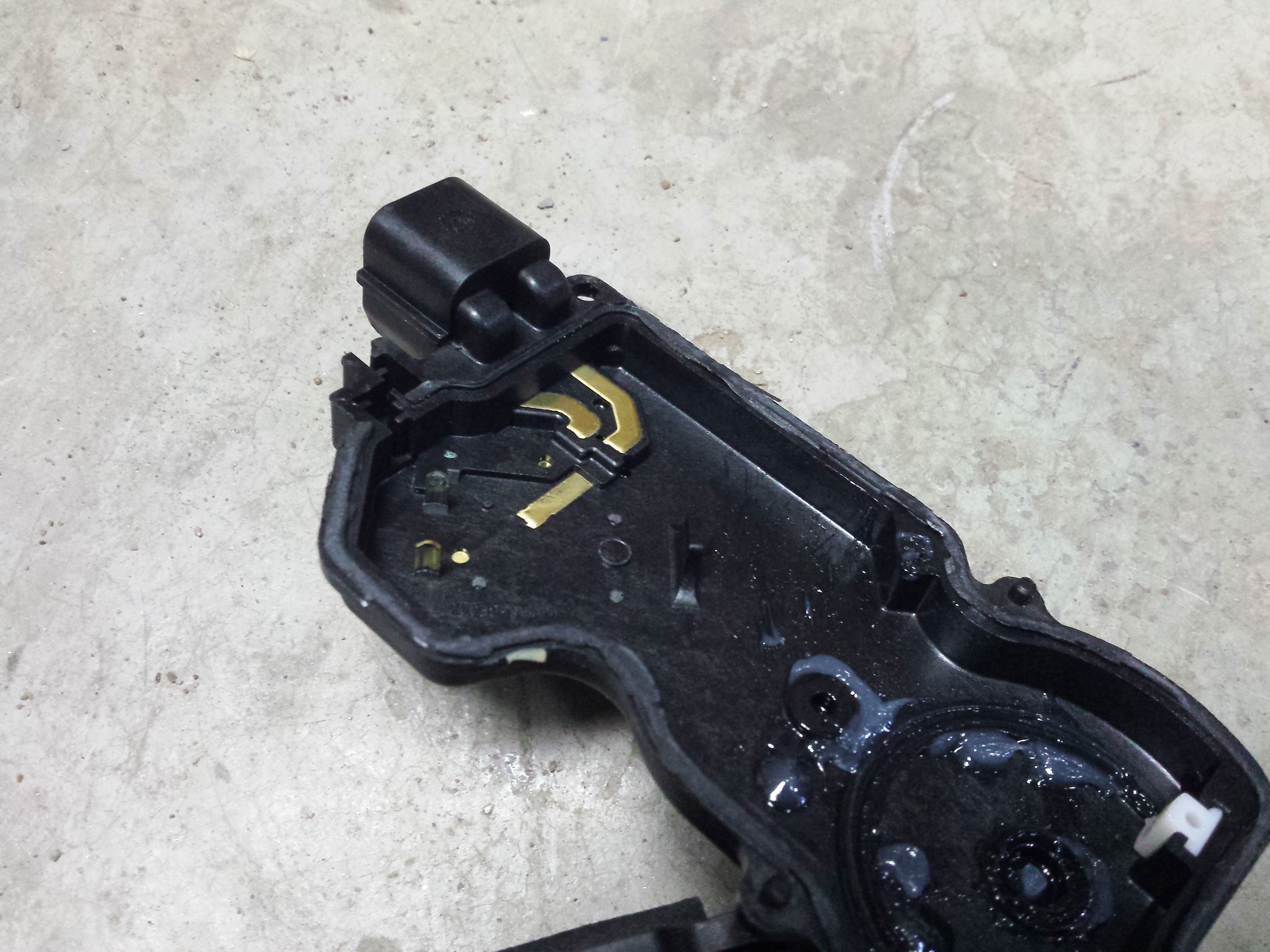 Всем привет! Машинка у меня 2012г брал новую. Вот спустя 7 лет отказал работать центральный замок , а именно на задней левой двери, все остальные пока работают нормально. Не задолго перед этим я пользовался защелкой от детей которая расположена на торце двери и думал что это из-за неё, перестал пользоваться и замок (активатор) через некоторое время снова заработал. Но радость длилась недолго и снова не работает. Позвонил электрику который раньше работал у нашего диллера, он сказал, что это активатор они так обычно накрываются то работают, то нет и что ремонту они не подлежат только замена. Конечно я расстроился и полез на EXIST.RU, где увидел ценник около 7 рублей. Меня это совсем не впечатлило и решил я сам попробовать все разобрать и посмотреть. Здесь на Форуме поискал но ничего похожего не нашел.И так приступим к делу. Отворачиваем 2 самореза, один у рычажка окрывания двери под маленькой заглушкой, другой в подлокотнике.Потом оккуратно отщёлкиваем 10 пистонов, начинал снизу у динамика, на противоположном углу оказались 2 других пистона синего цвета, они у меня сломались (так и не понял почему не поставили все одинаковые). Затем отсоединил 2 тросика от рычажка отпирания двери и вывернул патрон с лампой подсветки и снял обшивку.Два крайних пистона справа уже заменил.плёнка закрплена на липкую мастику оккуратно отрываем, потом также приклеем. Дальше решил снять фишку с замка и поключить контрольную лампу.Попробовал работать центральным замком питание идёт, лампа загорается. И дём дальше. Отсоединил тягу от активатора и открутил три винта,вытащил замок (можно было фишку потом снять, внутри двери не очень удобно). Снова подключил фишку попробовал ц.з.-не работает, постучал по нему деревяшкой заработал. Решил дальше разобрать,окрутил 2 самореза с торца замка и аккуратно осоединил замок от активатора, там увидел крышку механизма активатора закреплённую на один маленький саморез. Открутил его но крышка еще не отходит, оказалось ещё и приклеена. Аккуратно подковыривая ножиком все-таки снял.Замок в сборе.Отсоединил замок от активатора.Снял крышку механизма.Два контакта к электродвигателю.Видно на одном из контактов окисел.Окисел на минусовом контакте. Кода снял крышку механизма, то увидел, что один из контактов (минус) покрыт зелёным налётом. Вот где собака порылась!!! Почистил всё и смазал (NANO PROTECH Диэлектрик).Потом собрал всё в обратной последовательности.Проверил, работает. Итог: Экономия около 9 рублей (запчасть+работа). Всем удачи на дорогах.Заменил два пистона.Дверь в разобраном виде.