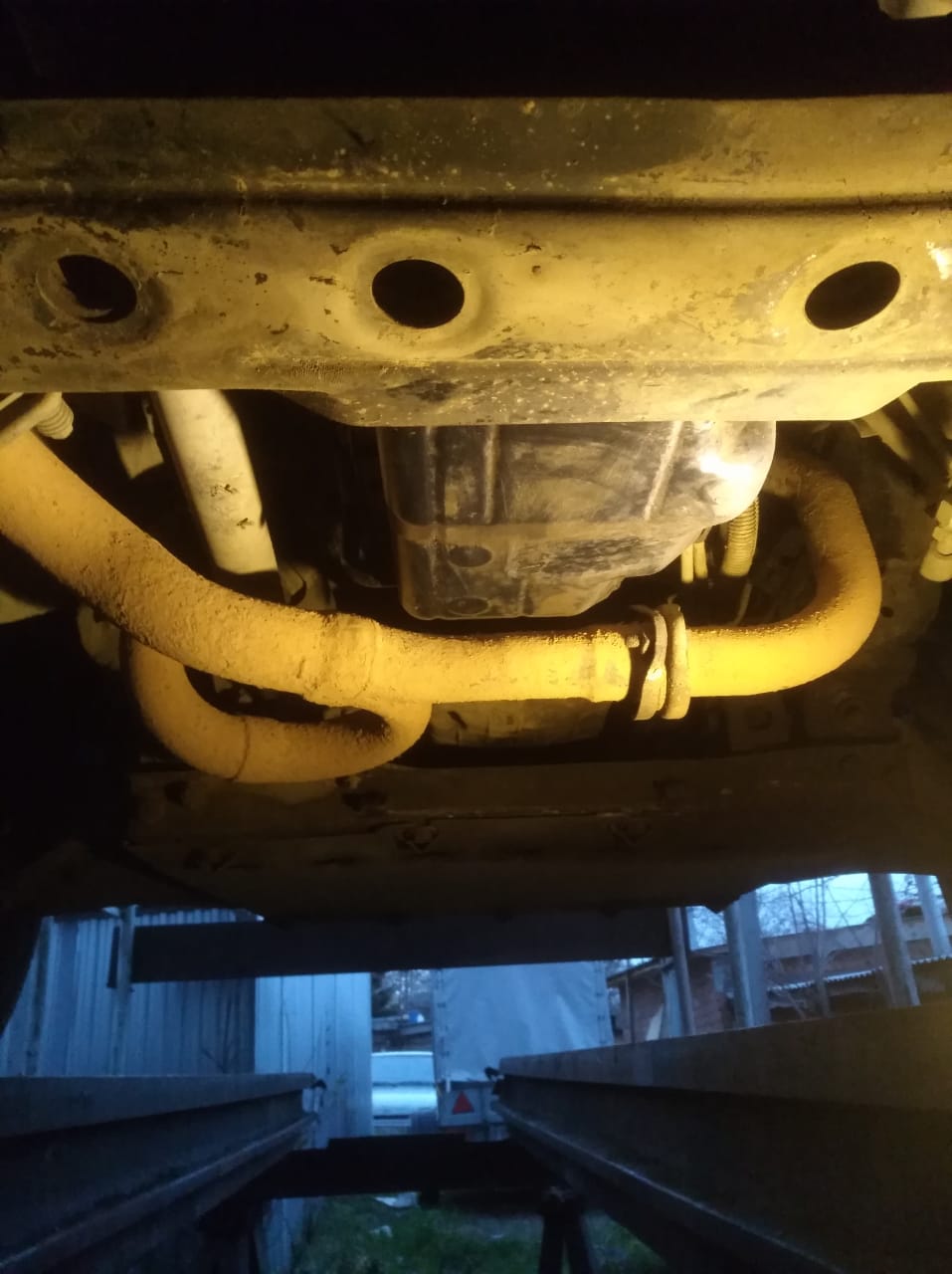 когда силовой агрегат сильно изгибают хвостом вниз, выхлоп ложится об передний подрамник и идет на излом.