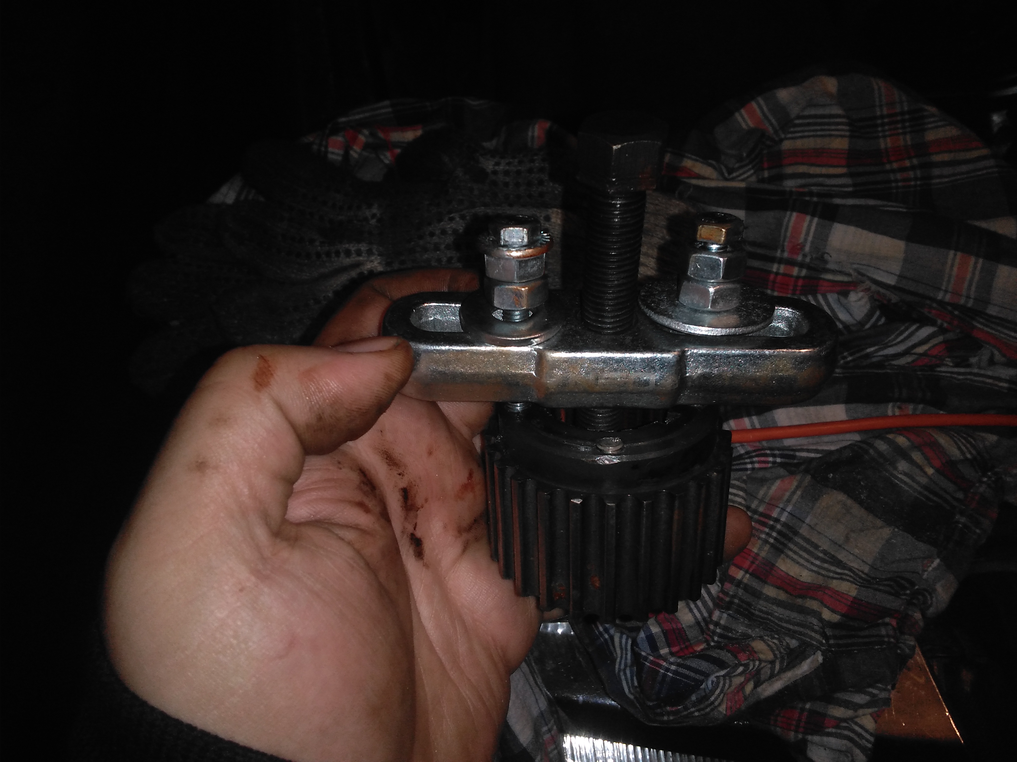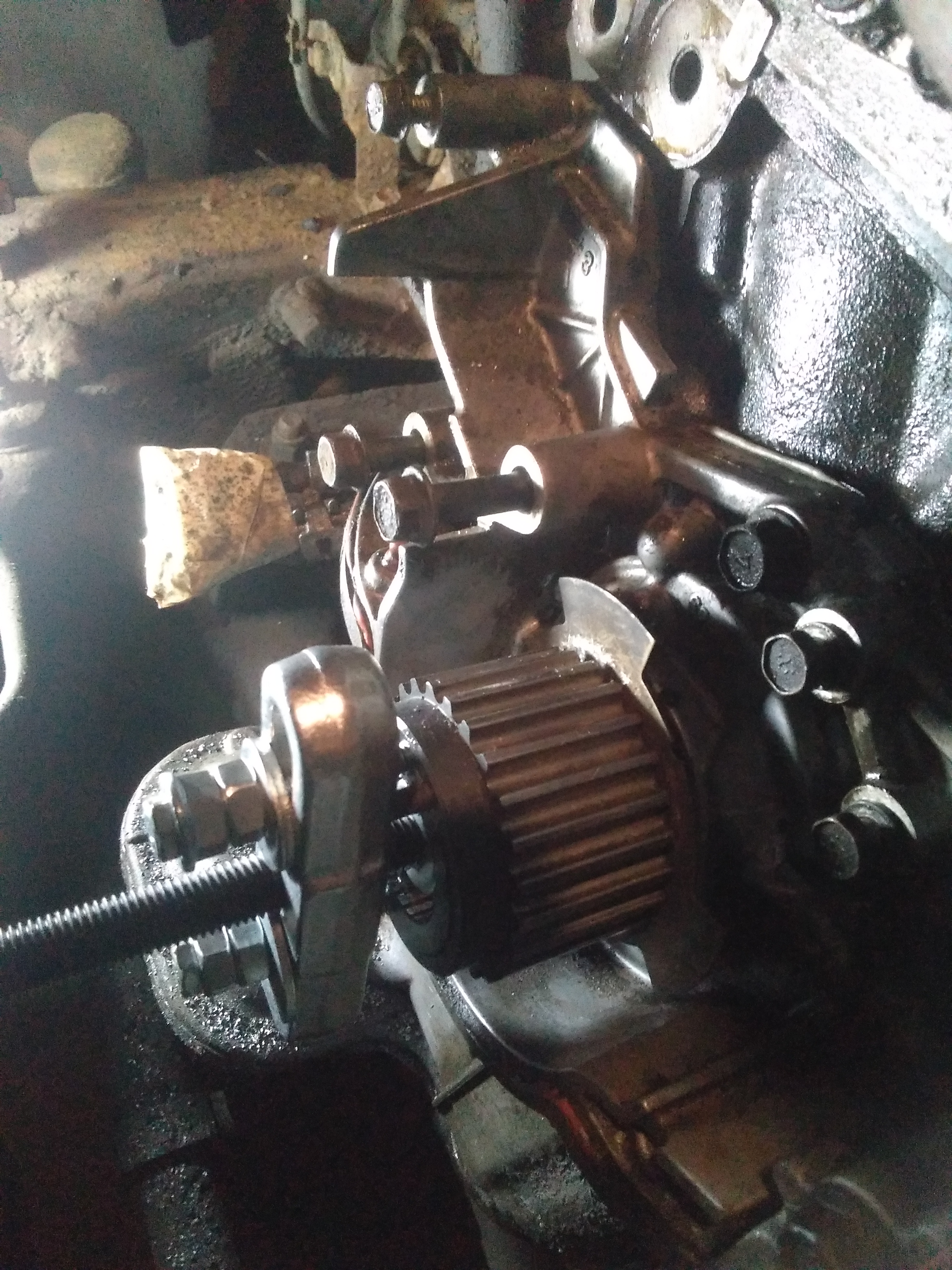 Сначала мучился с болтом шкива коленвала, когда открутил этот болт, по белому порошку на болте понял, что болт был на фиксаторе. Снял звёзды распредвалов, увидел, что сальники на герметике. Теперь не могу снять звезду коленвала, видимо тоже на фиксаторе. Маньяк какой то до меня машиной владел. Раздраконил отвёрткой уже весь ротор, но звезда сидит на месте как приклеенная ))). До этого пару дней Вэдэхой отмачивал. Ротор, звезду не жалко, уже новые куплены. Сварки нет. Посоветуйте, как звезду сдёрнуть, съёмником к задней стенке звезды не подлезть...