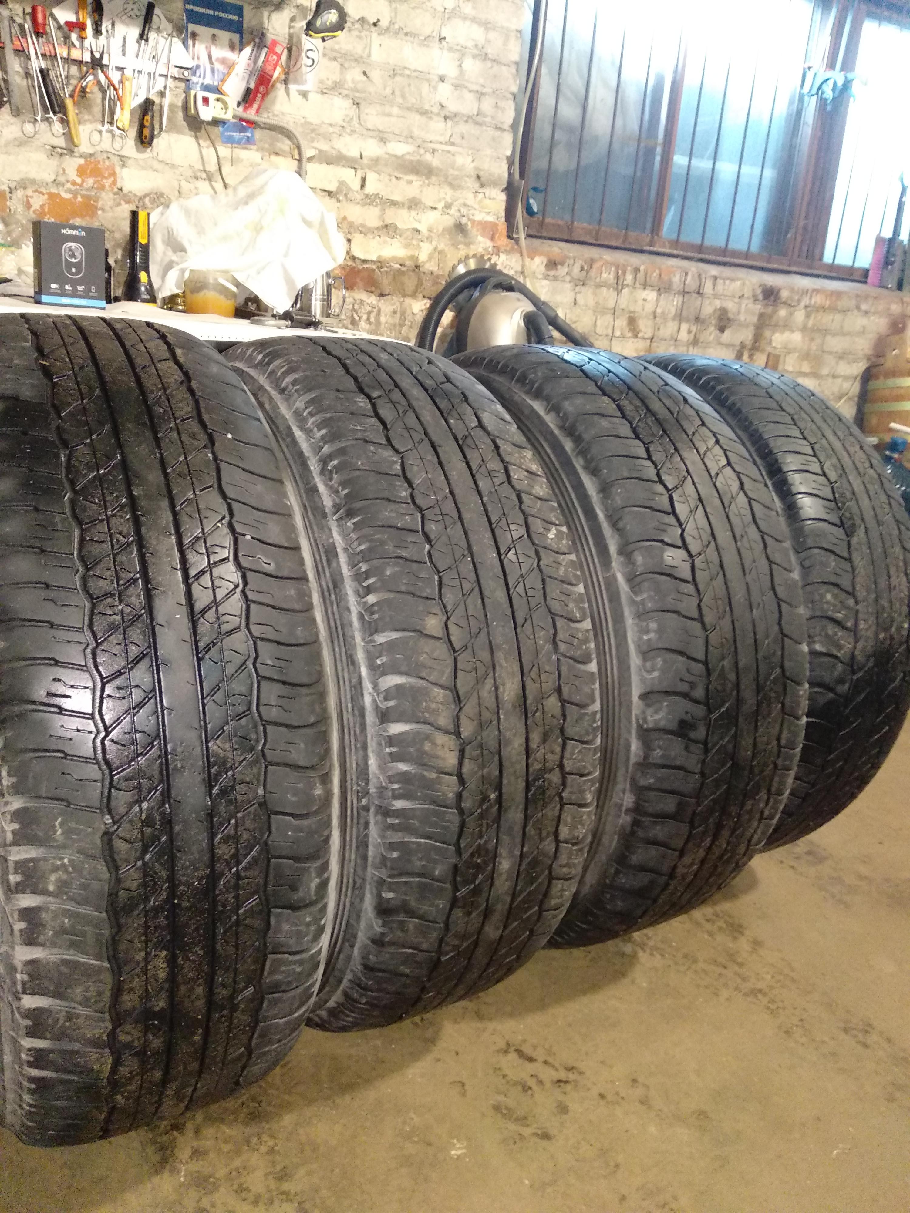 Продам б/у комплект Dunlop Grandtrek AT20 265/65 R17 (4 шт). Без грыж. Хватит на один сезон точно, может на два. На двух покрышках было по одному проколу (корд не задет), стоят жгуты. Состояние смотри на фото.