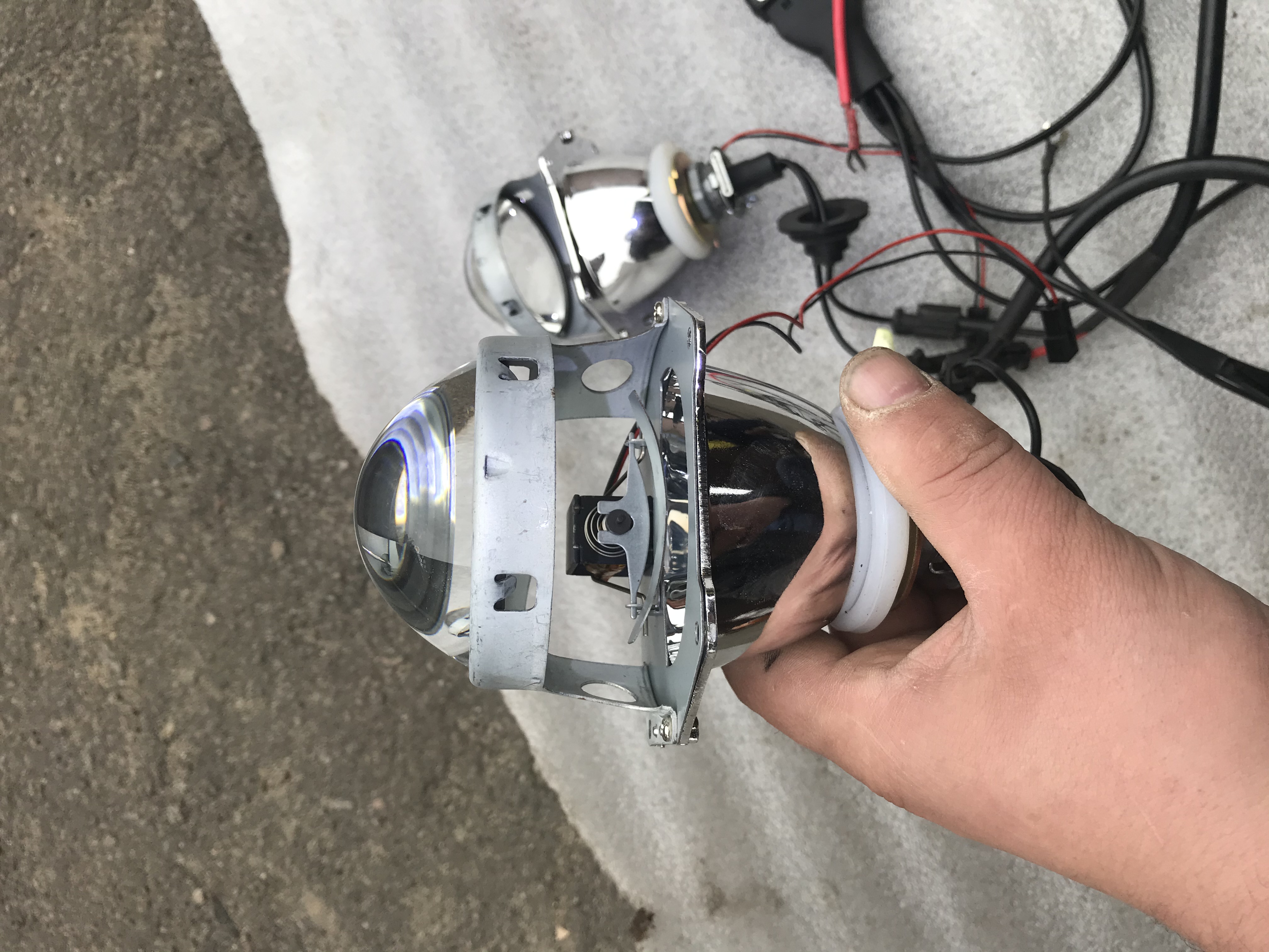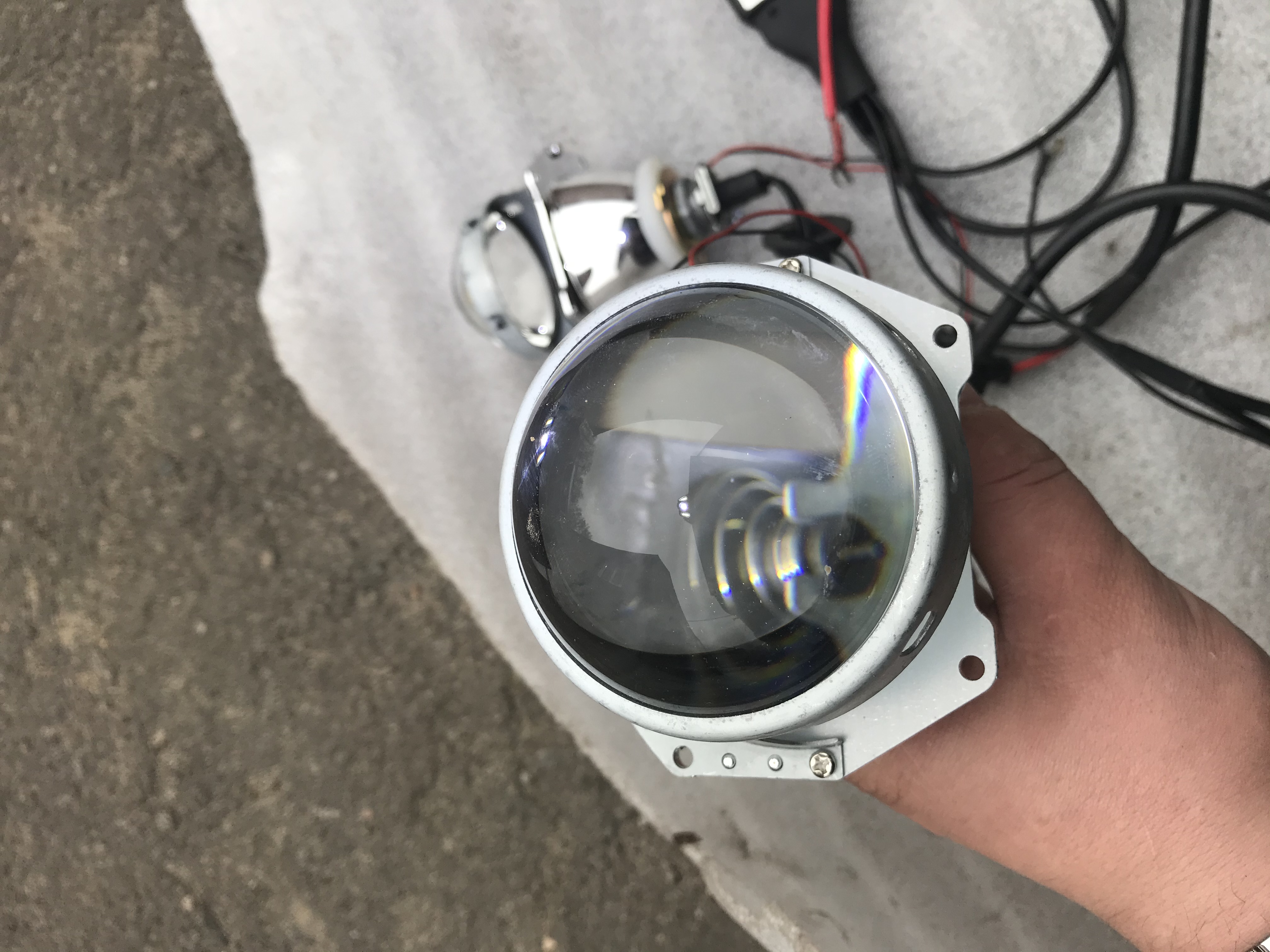 Продам комплект би линз 3 дюйма под лампу H1, комплект снят с фар паджеро3, устанавливается без танцев с бубном, на место штатной лампы. В комплект входят сами линзы, лампочки ксенон 4300, блоки розжига Sho-Me для скрытой установки под фары, и вся проводка для подключения в штатную электрику без переделки.