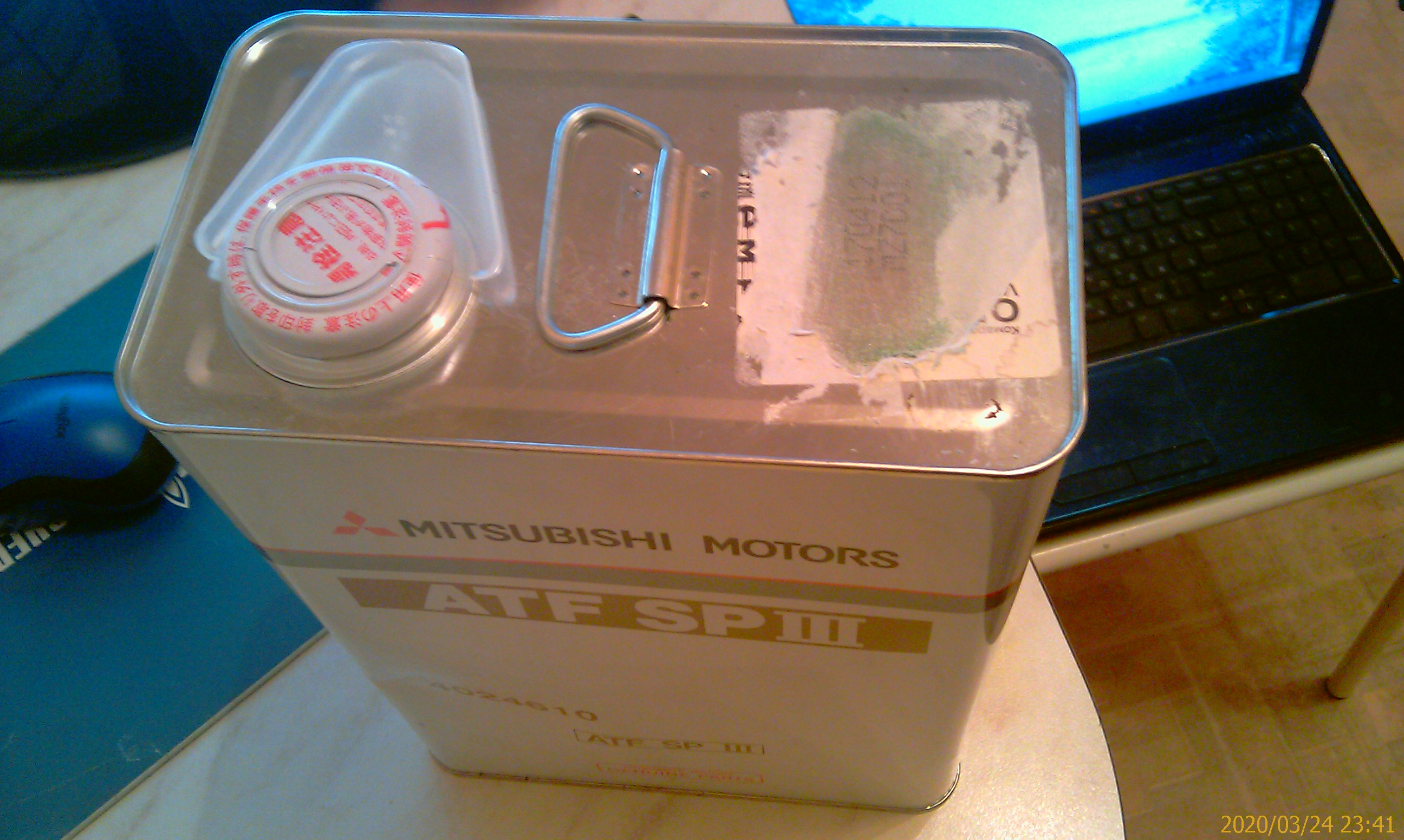 Летом 17-го года Емекс привёз мне пару банок Mitsubishi 4024610 DiaQueen ATF SP III. Что-то я тогда к переключениям коробаса придирался, хотел внеплановую частичную замену жижи сделать плюс фильтр,да так и прособирался.