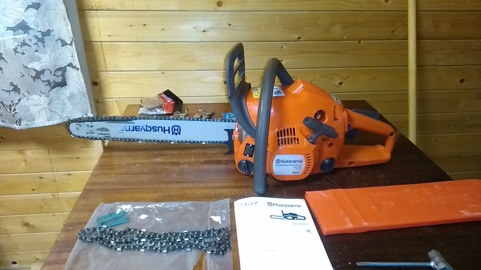 ПРОДАНО бензопилу Husqvarna 120 Mark II шина 16 дюймов, покупал в августе 2019г. в магазине "Всеинструменты", гарантия 2 года, т.е. еще осталось больше года.Все работает, все исправно. За это время не успел израсходовать и полторашки бенза.Спилил пару небольших березок. Продаю т.к. думаю купить что либо по мощнее. В комплекте то что на фото + 3 дополнительных китайских цепи и гарантийный талон. Цепи на фото родные.Цена 10 000р.В Москве, м.Сокол, т.8-926-724-46-12 Сергей.