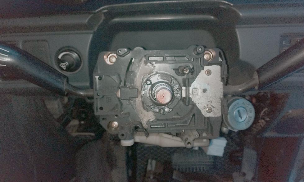 Крепится шлейф если стоит подушка через шлейф и сигнал но у тебя подушки нет и сигнал управляется через штырь и кольцо на руле.