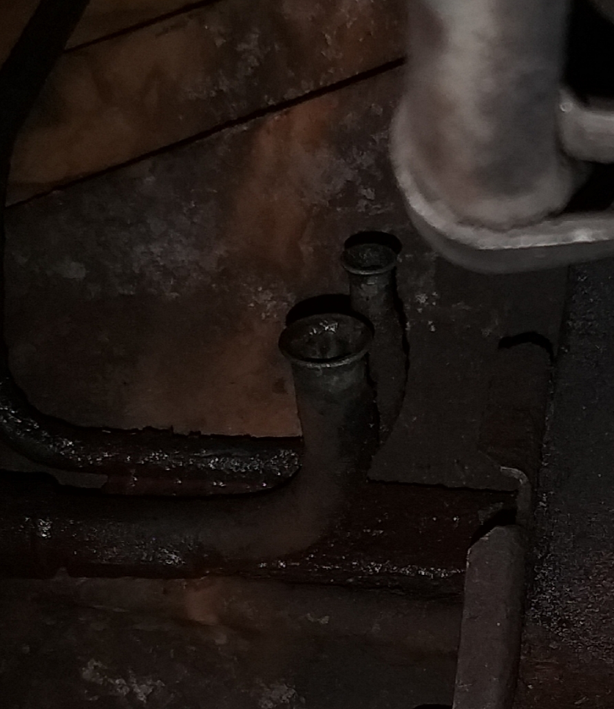 в развале труба, соединяется рез.кольцами их менять и соединительная труба голов, там патрубки печки запитаны.