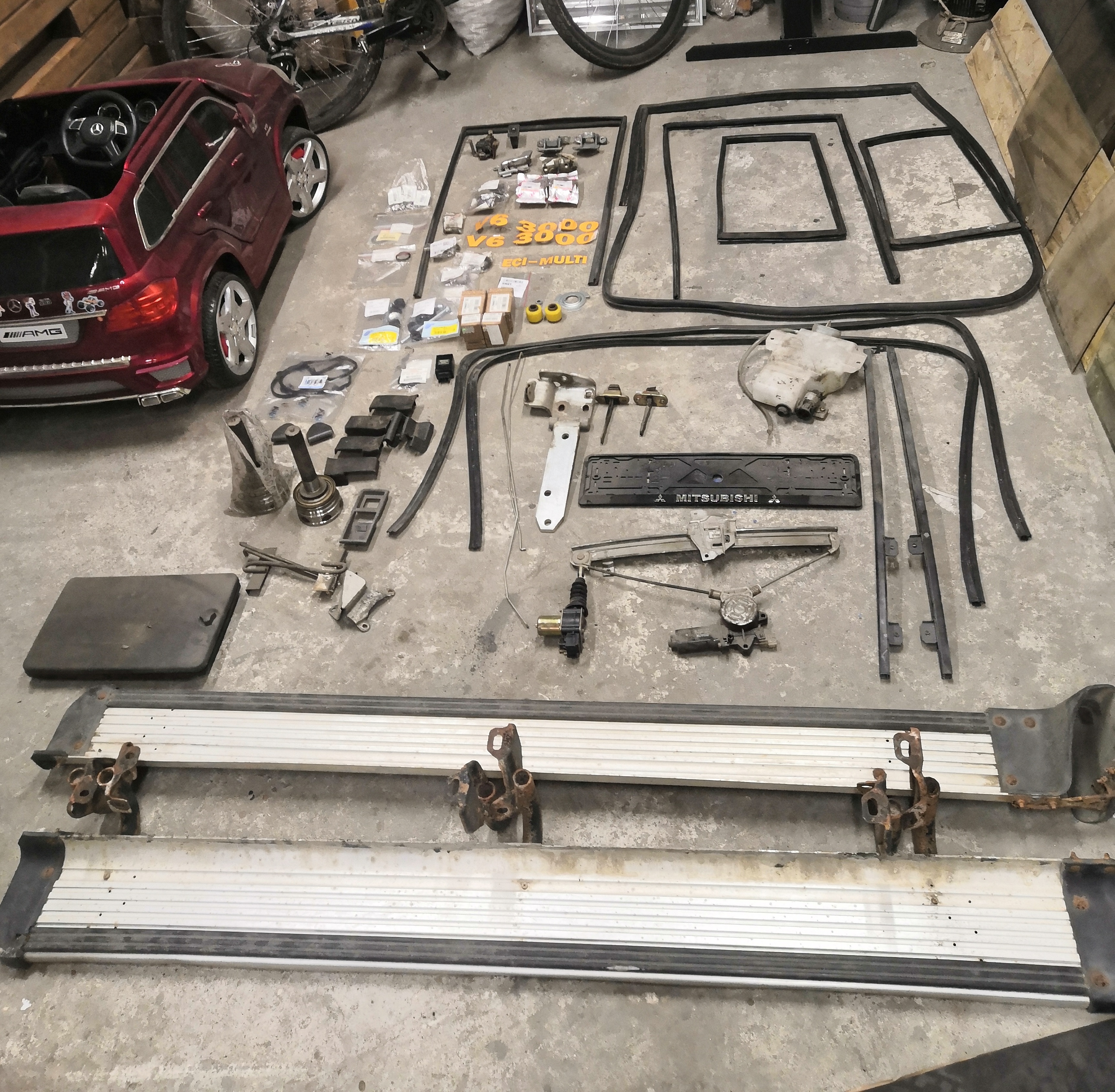 После продажи машины остались кое какие запчасти резинки по 100р, пороги 1200;