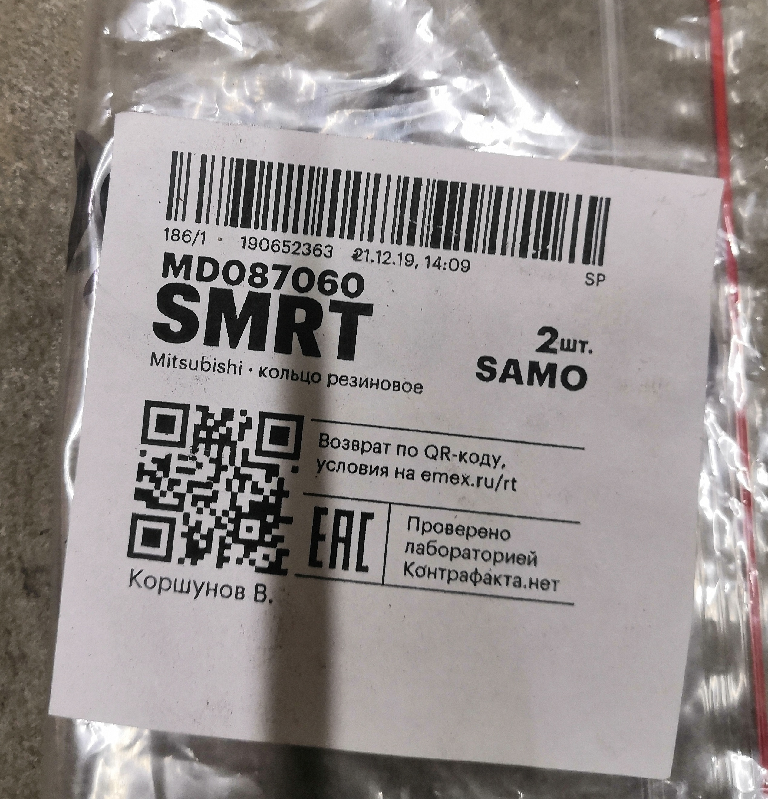 Mitsubishi MD08706 кольцо уплотнительное форсунки 2 шт, цена за оба 100р