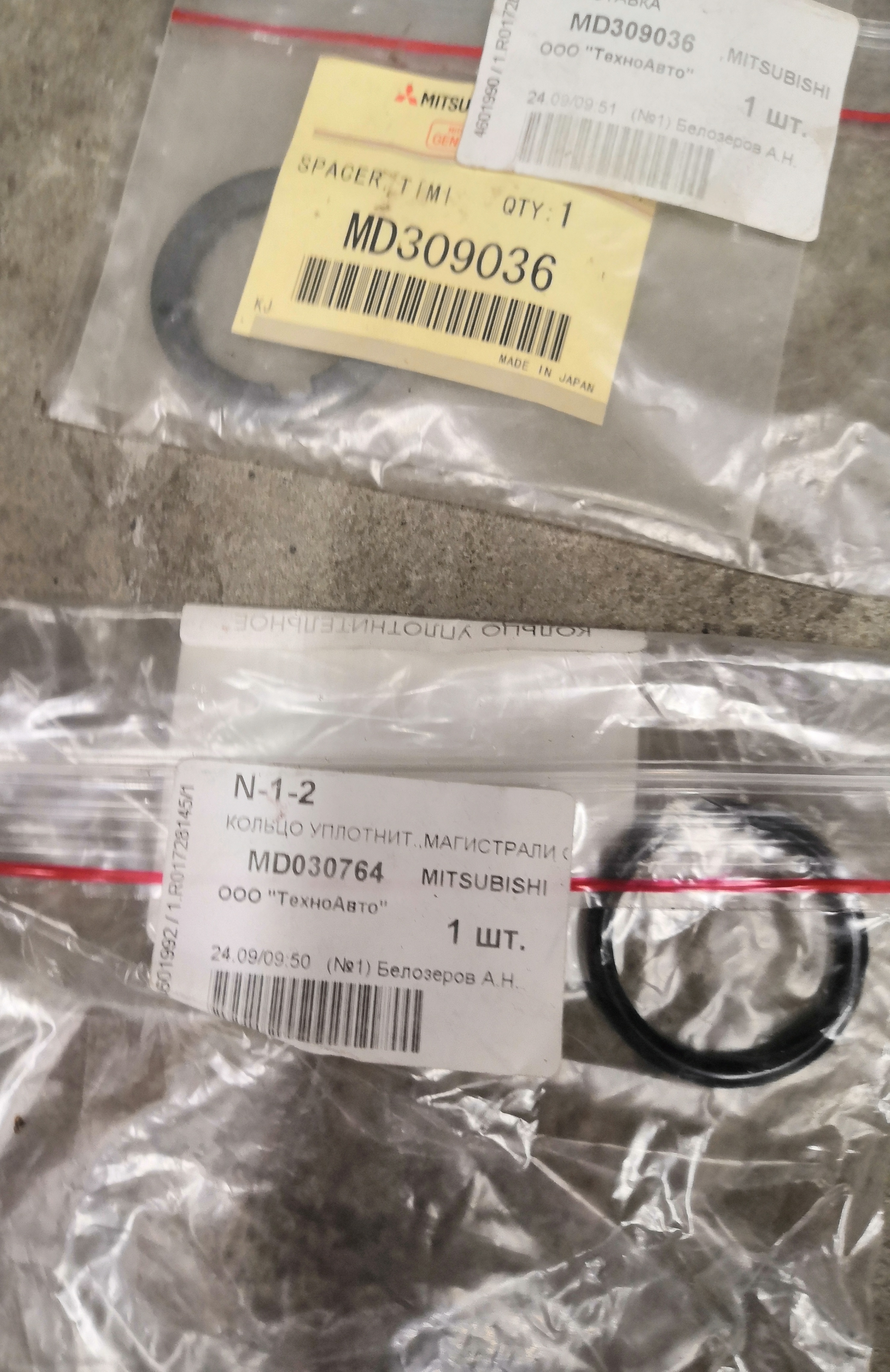 Mitsubishi MD030764 кольцо уплотнительное 150р; Mitsubishi MD309036 Проставка зубчатой передачи ремня грм -300р