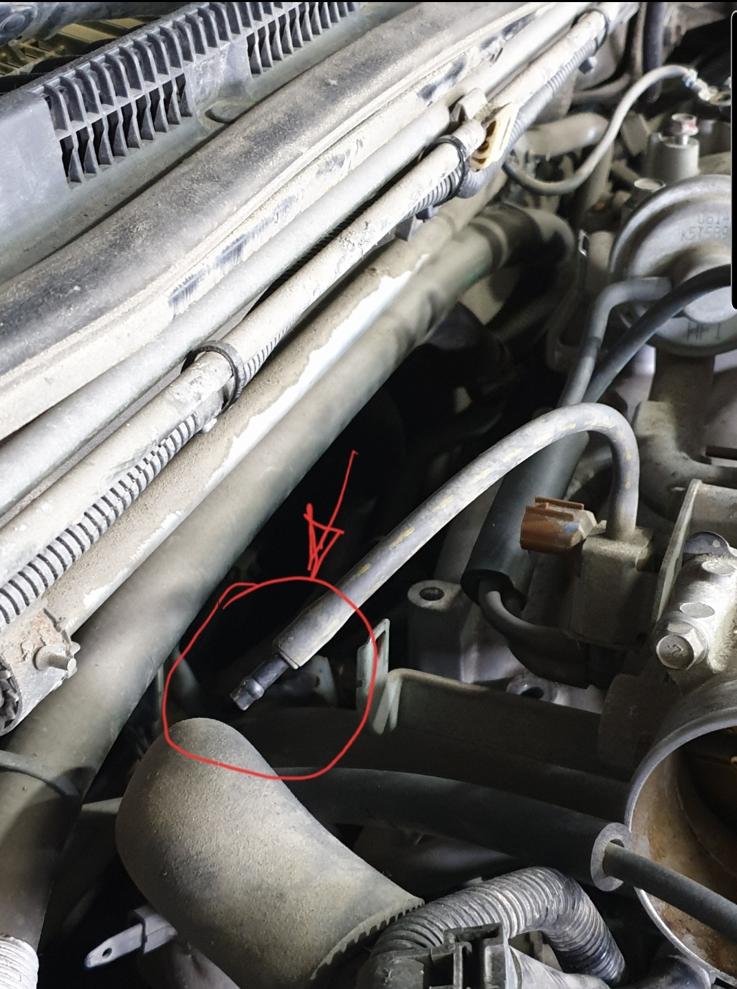 Куда подключается эта трубка? Болтается...