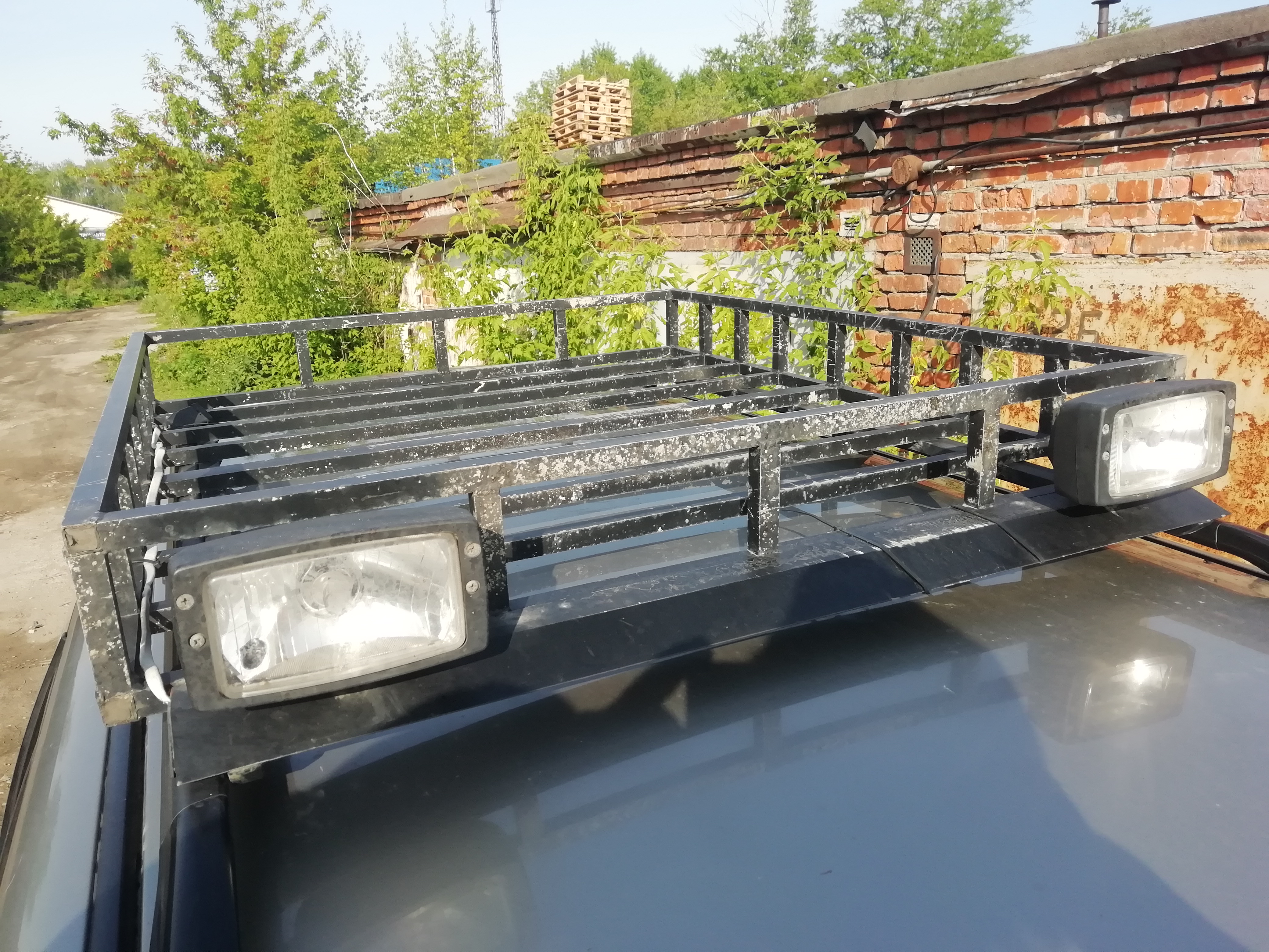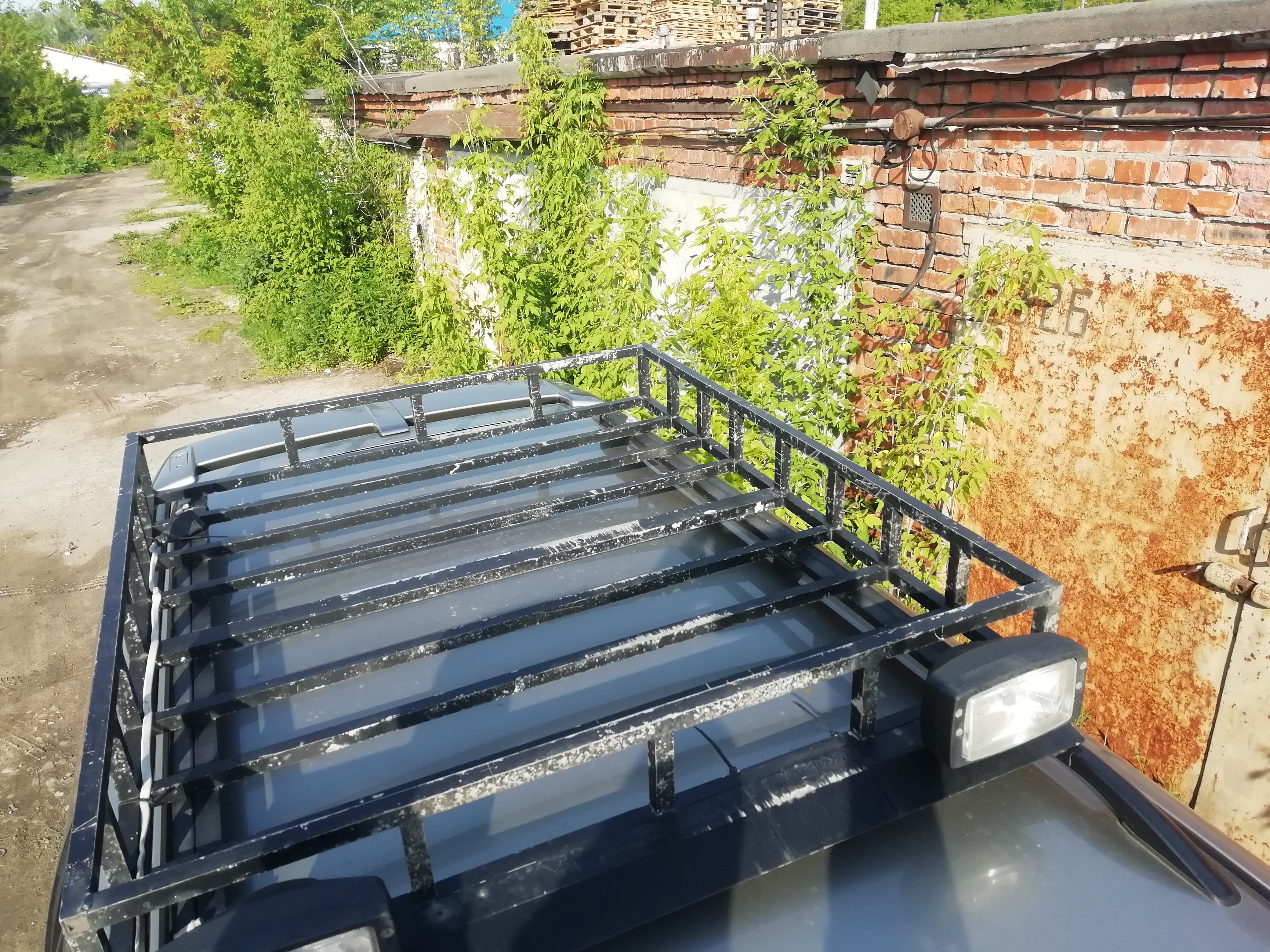 делал сам,на совесть.простоял лет 5-6,на четырех винтовых хомутах на рейлингах. перевозил на нем невесть что и невесть сколько,и пеноблоки,и доски,и профтрубы.... погнутостей при осмотре не обнаружено.только потертости краски,красил баллончиком обычным.
