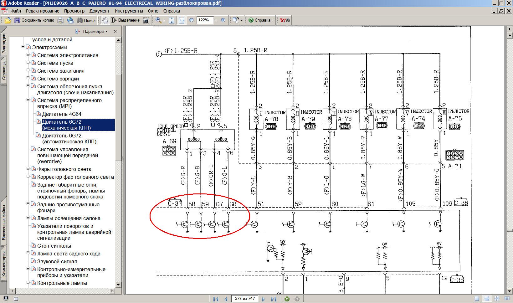 Т.е. прозваниваем с разъёма ЭБУ С-37 (средний по размеру из трёх) отдельно две цепочки контакты 58-59 и 67-68.