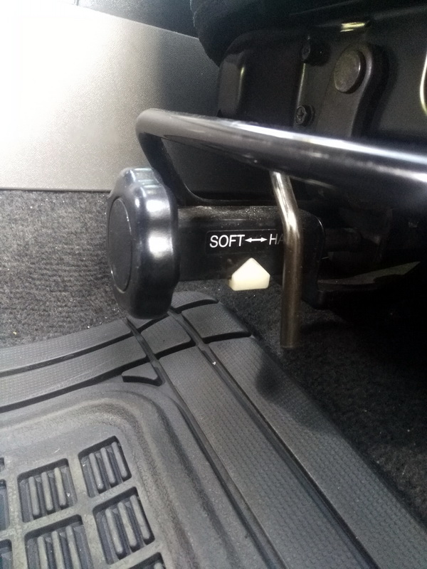 Надпись на ручке под передними креслами — Hard-Soft, рукоятка крутится довольно туго. Собственно для чего эта приблуда, что она регулирует и для чего металлический рычаг, который входит в зацепление с рукояткой — регулятором?