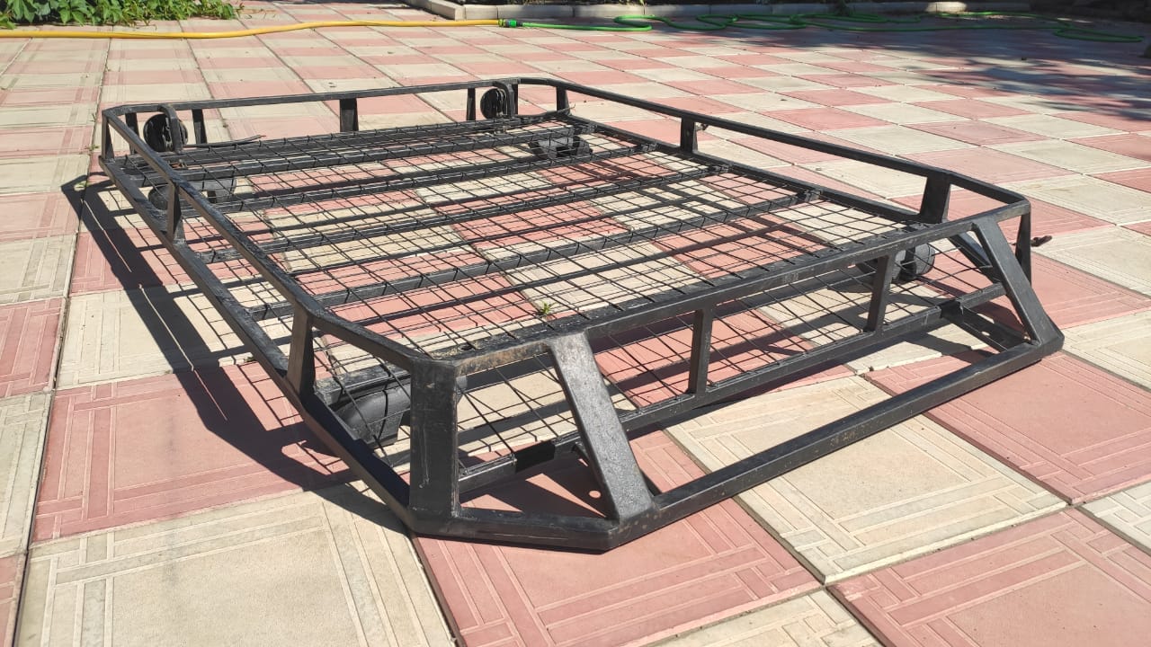 Экспедиционный багажник на Mitsubishi Pajero JR. Максимальный размер креплений можно отрегулировать на 92 см (рейлинги). Длина 146 см
