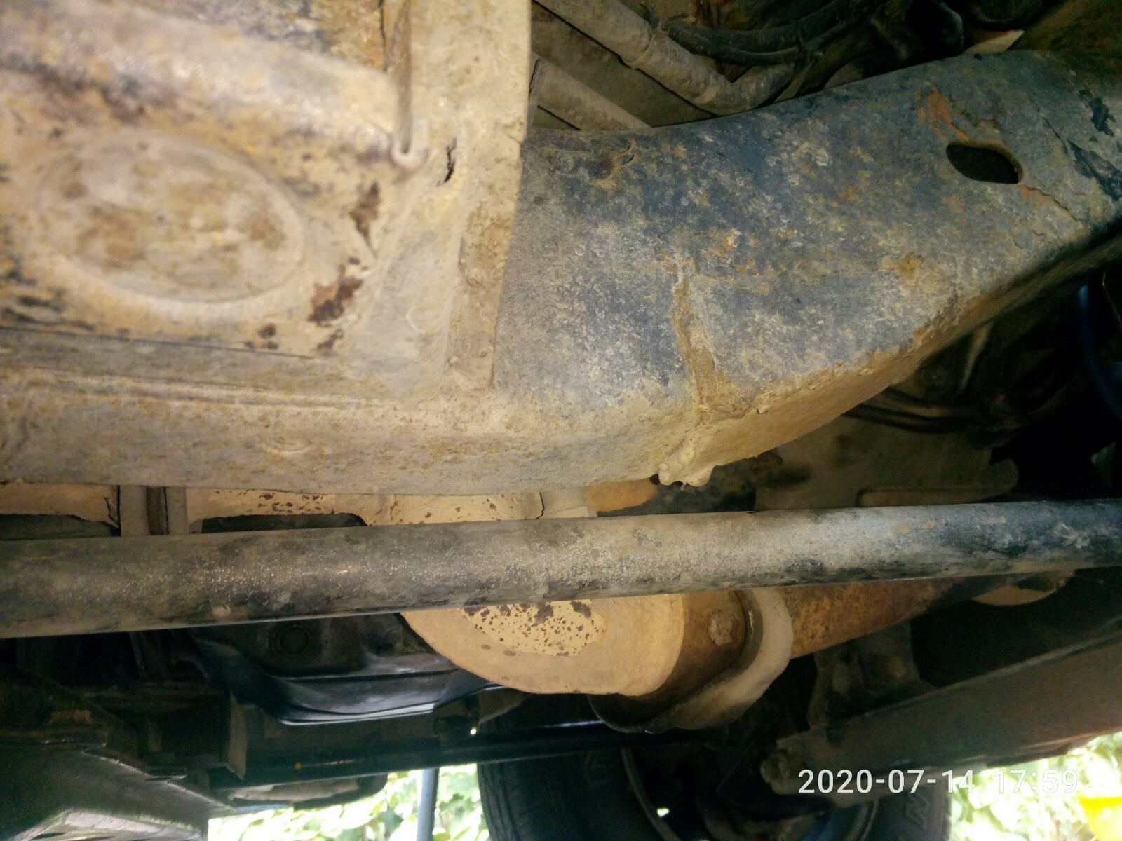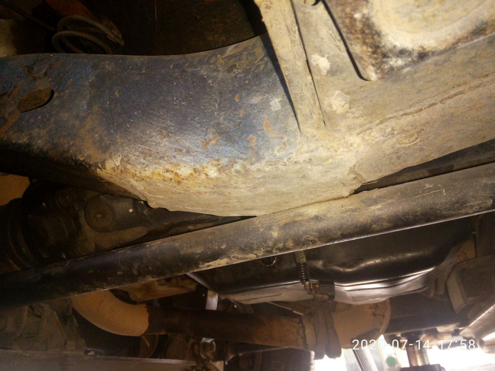 Ну и больше я никаких видимых не нашел изменений снизу... Как уже из фото понятно, начал уже разбирать, буду снимать кузов с рамы... Сама рама лопнута в нижних местах была как я понимаю и заварена... Может ее и не выставляли, просто косынки поварили поверх, ну это мое как предположение.. И да машину я такую купил, видел подушку рваную, но невидел что движок лежит на вакуумном... Подводные камни такие вот вылезли... Была вибрация, думал из за рваной подушки, подушки поменял обе, а вибрация так и осталась, а там вон оно чего оказывается, а снизу и невидно...