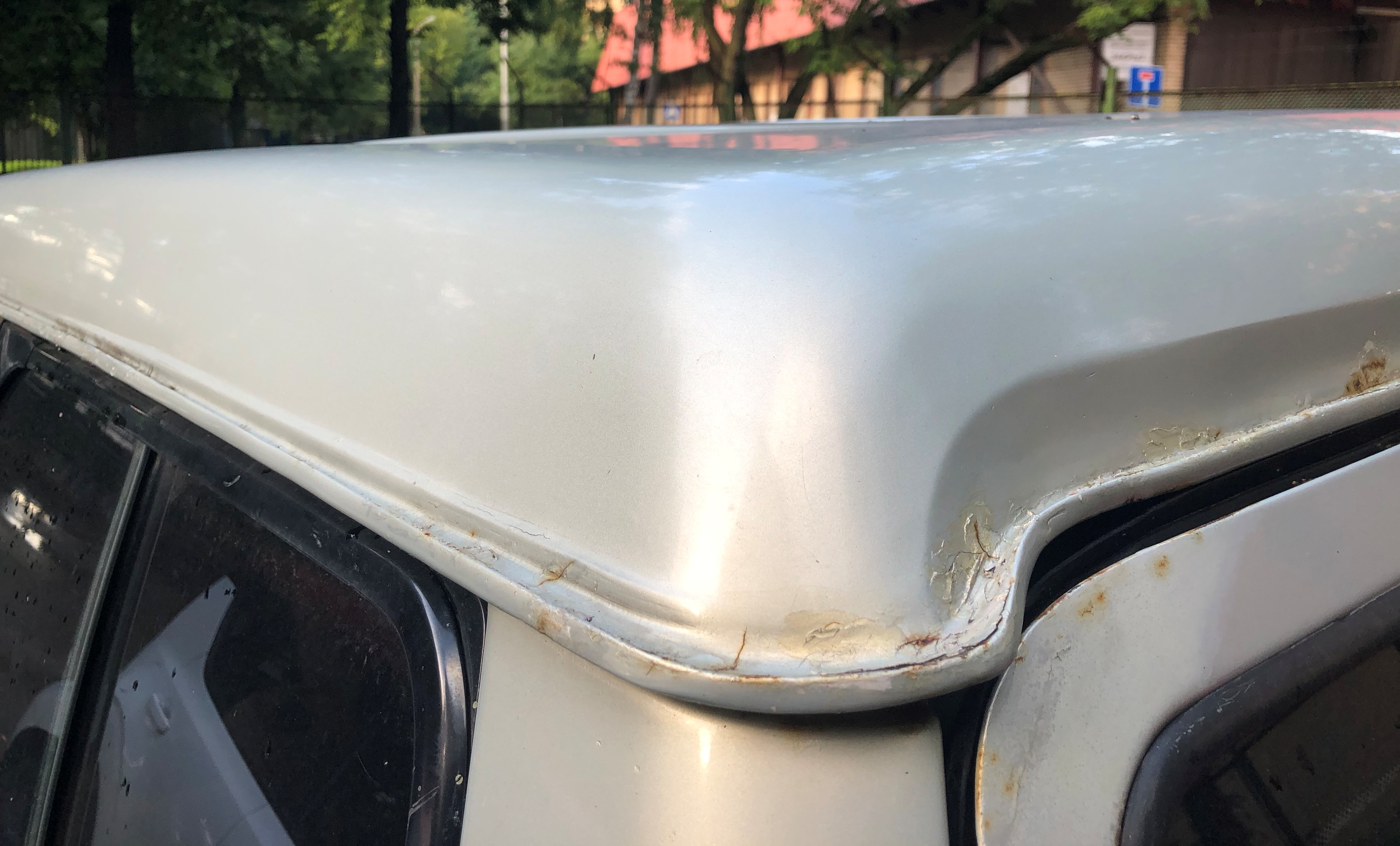 по фото можно увидеть, что в местах желобка есть коррозии и нет хром-накладок. Стекла все родные, кроме лобового.