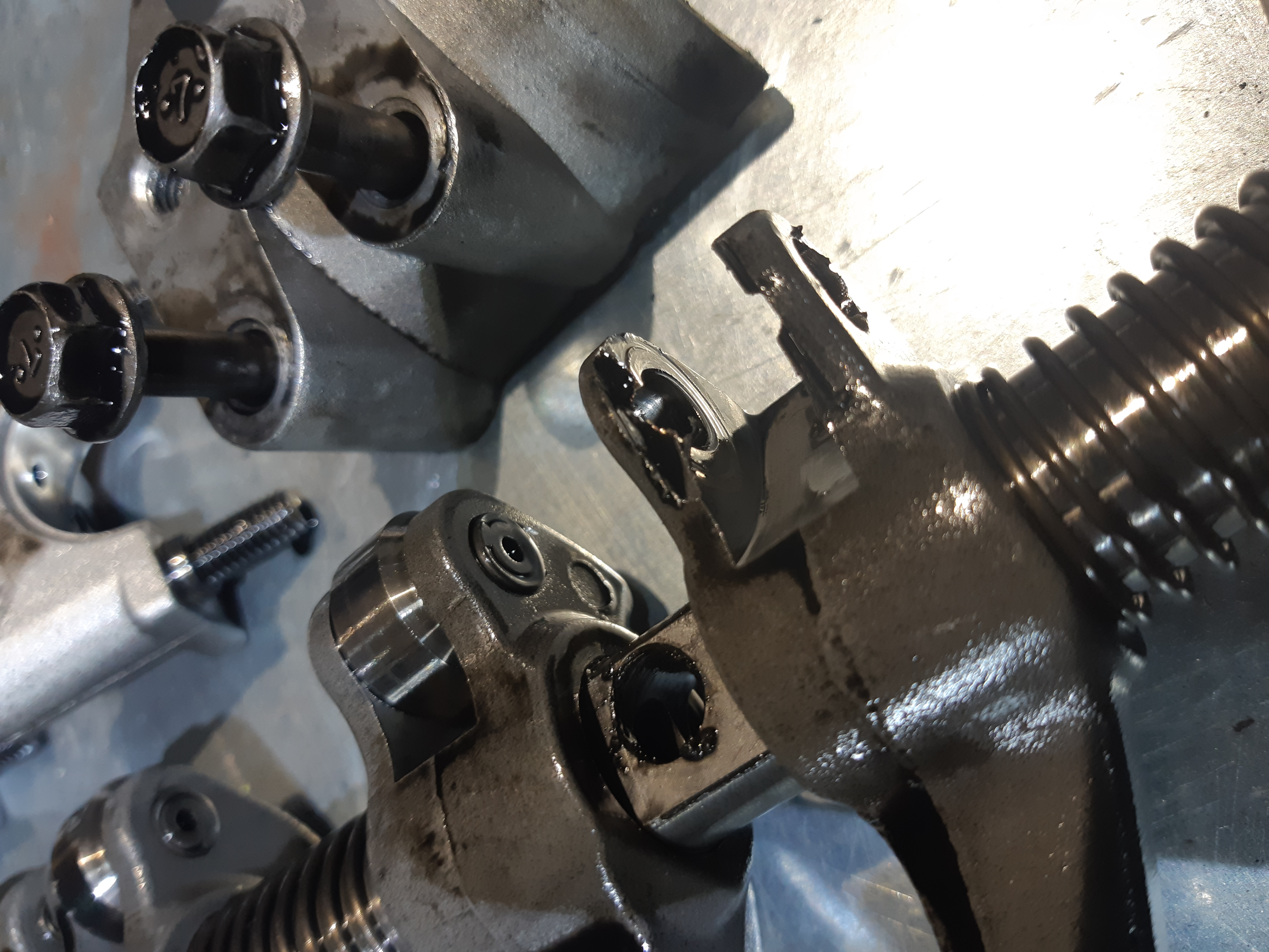 Нашёл причину, и она оказалась банальна. Развалился ролик рокера. Буду менять распредвал и рокера. Остальное все целое.