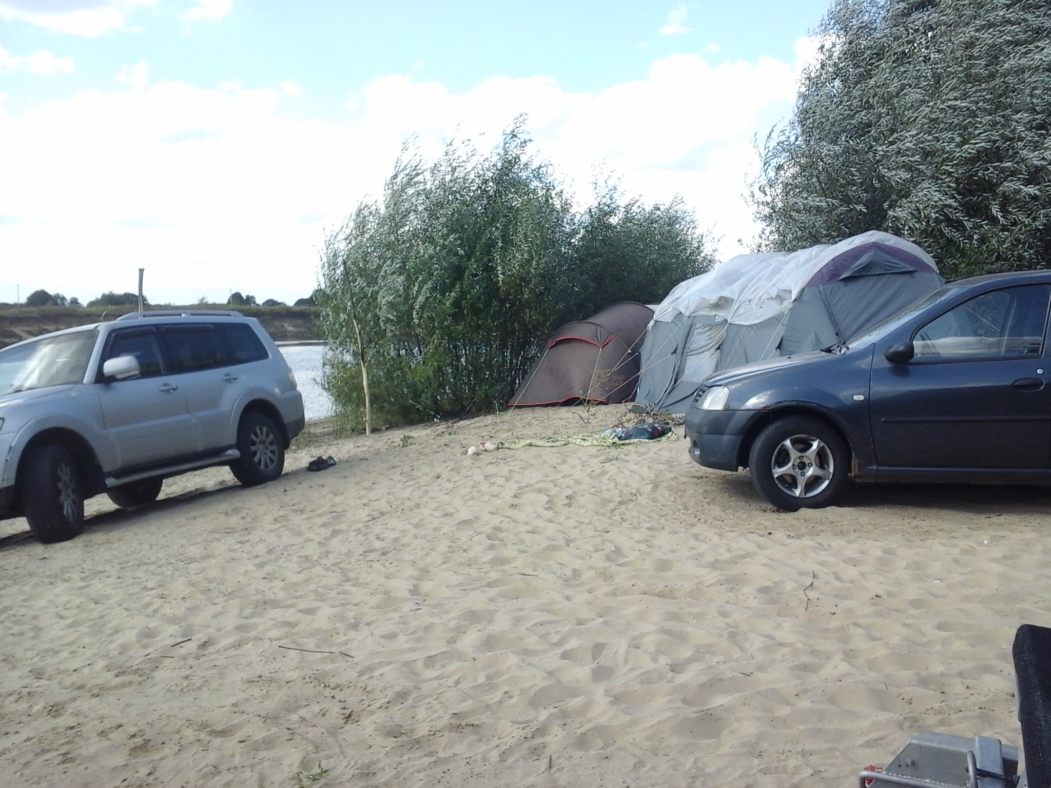 ...Вернулись с очередных на Оку... Рыбы не очень... Река обмелела... Шторм повалил и порвал палатки и шатры, но главный объект устоял...