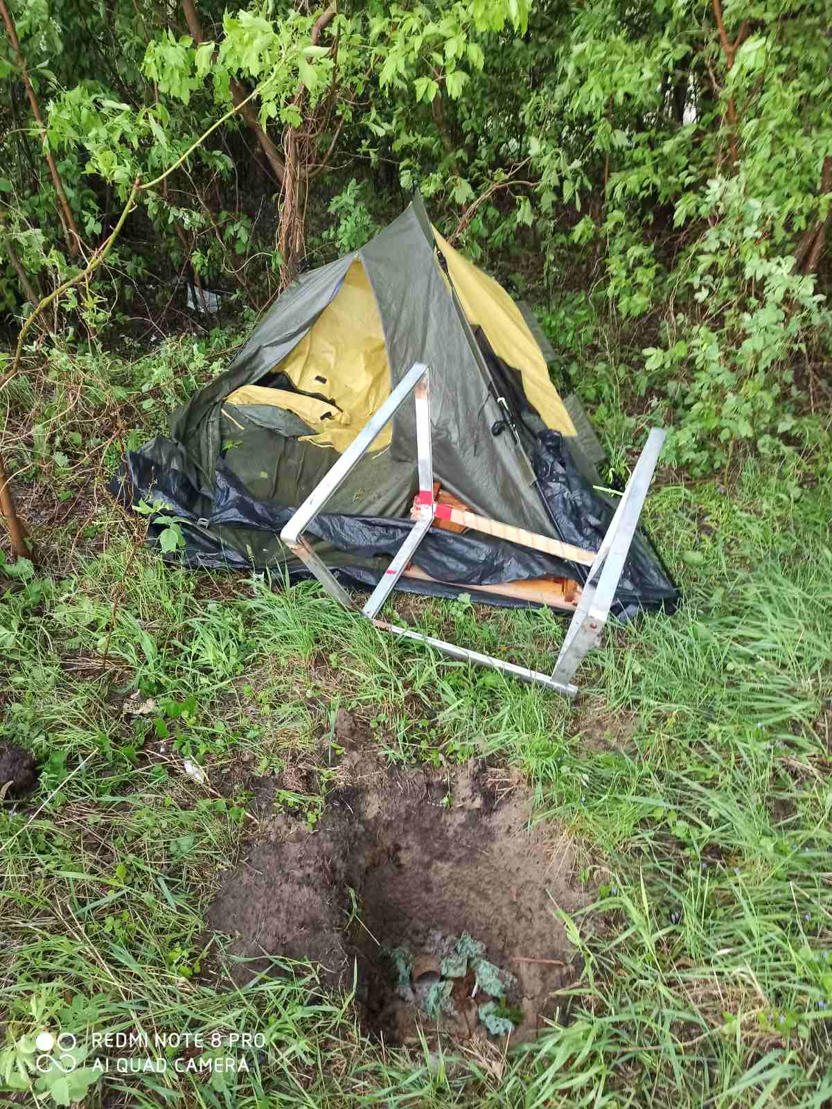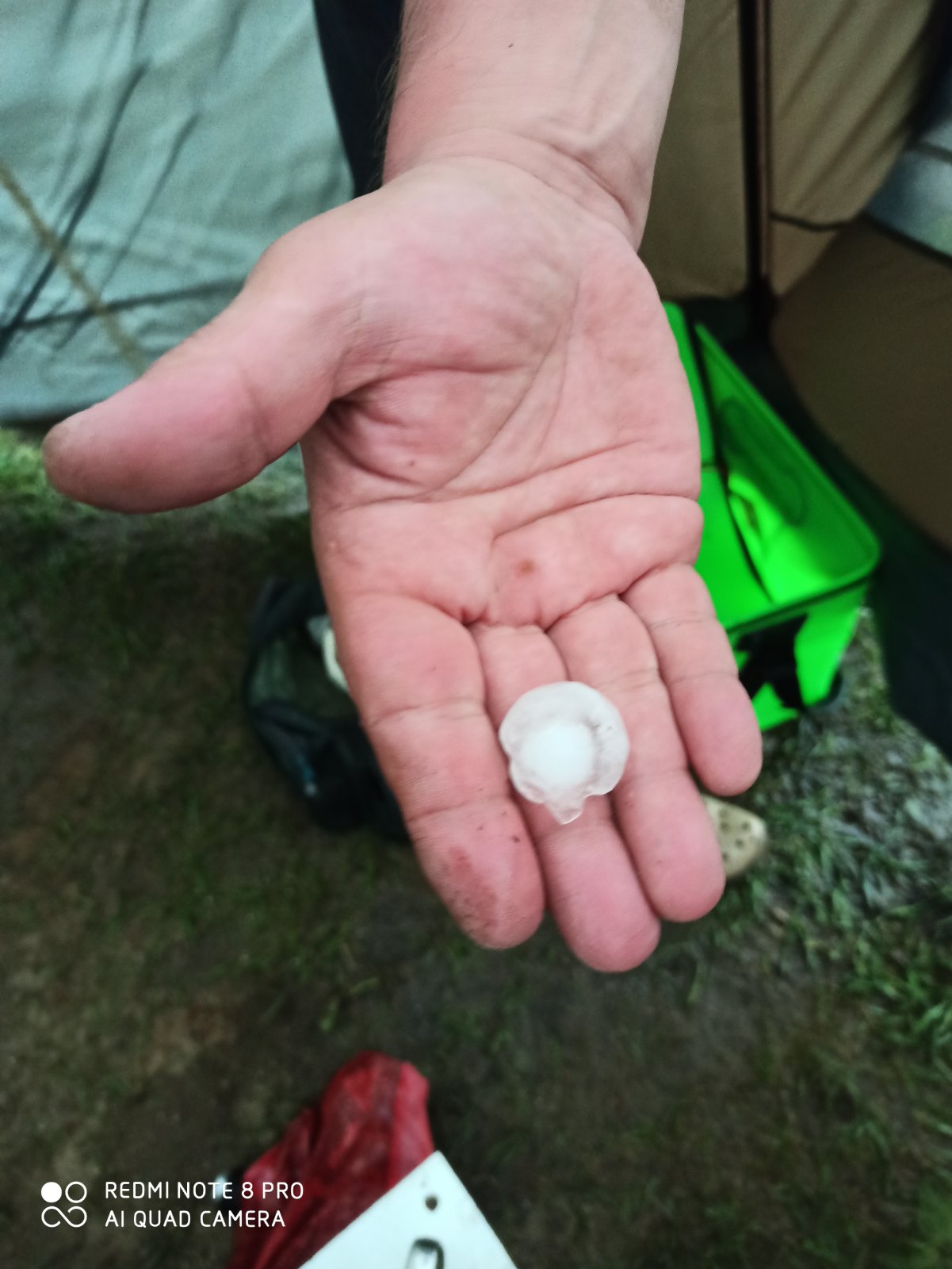 ...Мои съездили в прошлые выходные под Муром... Попали в ураган... Палатку спасли, хоть и летали вместе с ней все 4-ро взрослых... Когда более-менее стихло, думали- всё, успокоилось... И тут шарахнуло градом...
